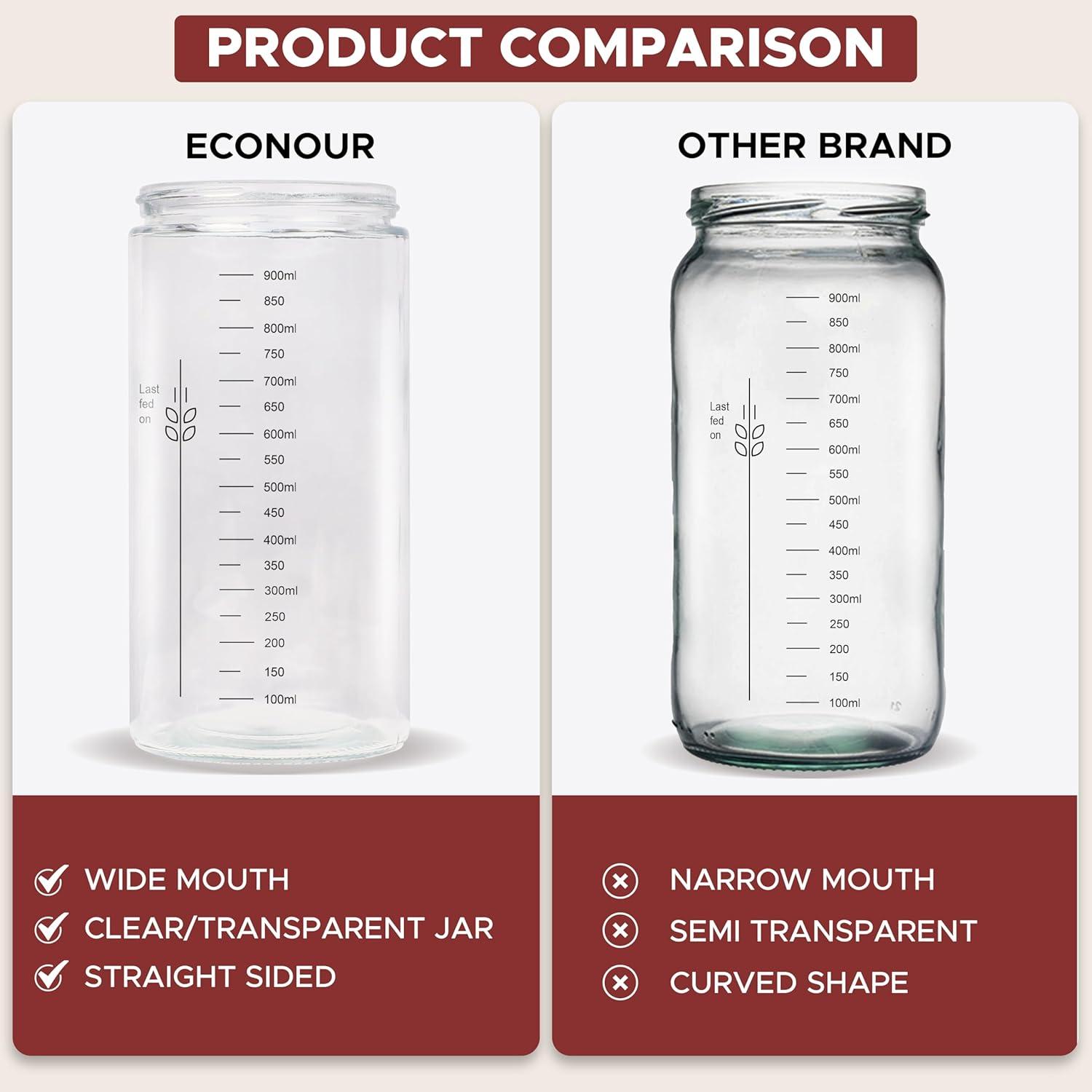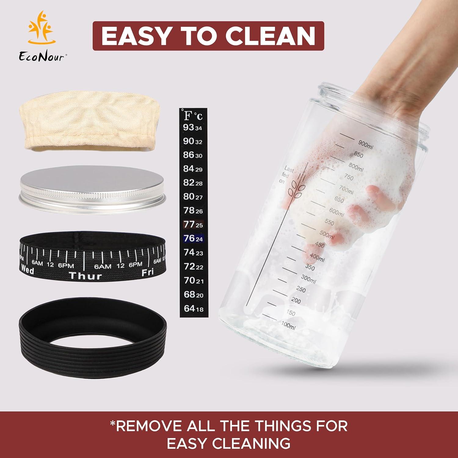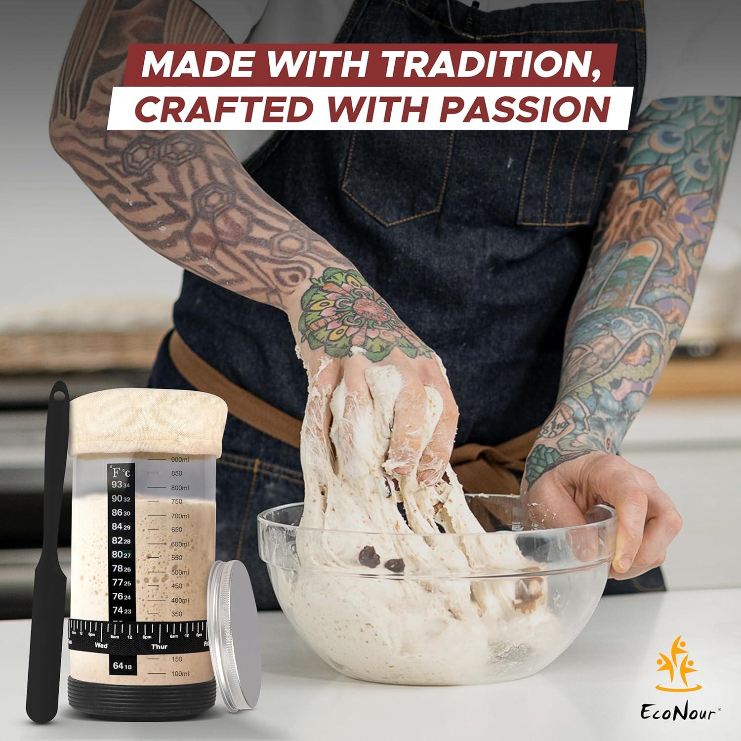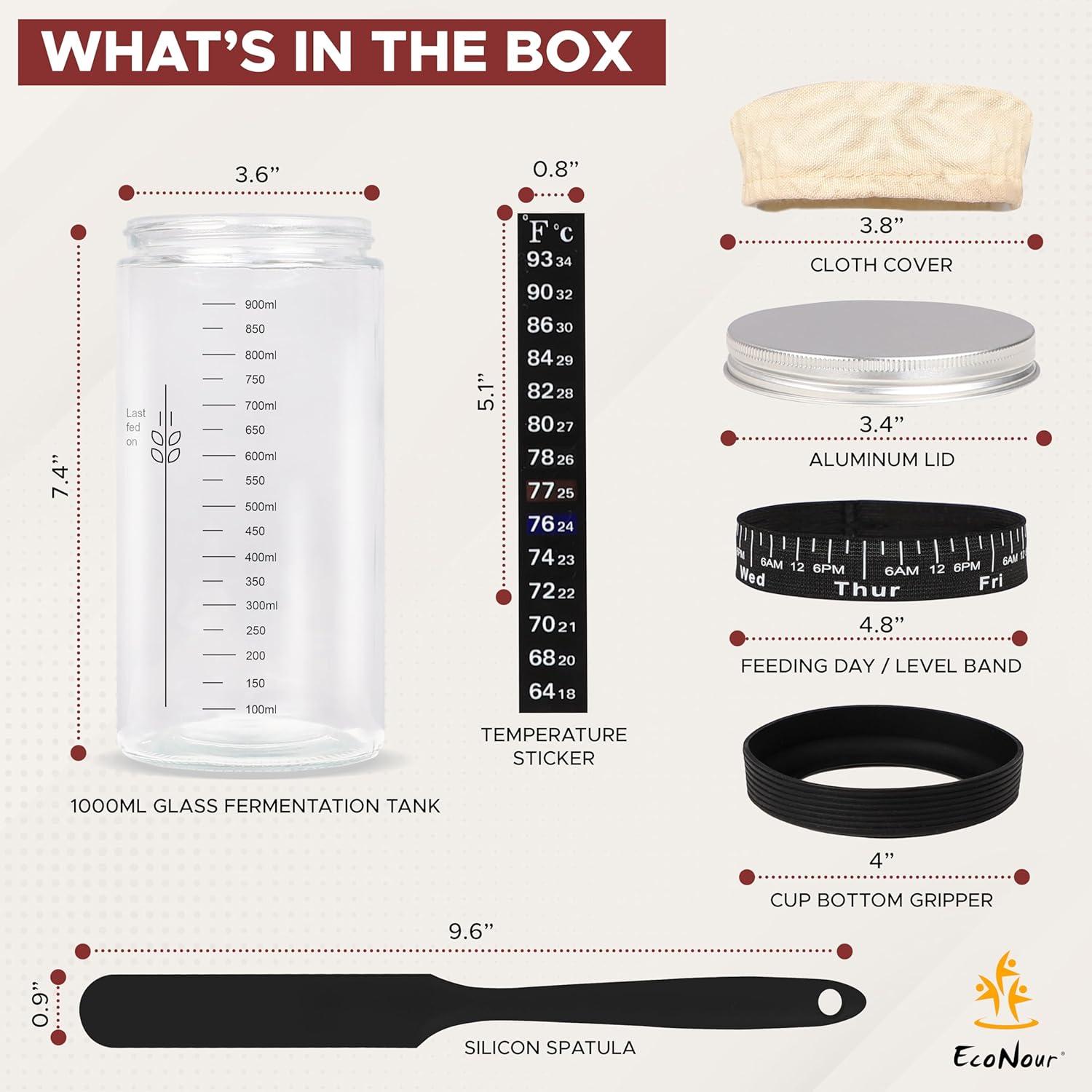 imageEcoNour 1000 ml Sourdough Starter Kit  34oz Glass Sourdough Starter Jar with Thermometer Spatula Cloth Cover  DateMarked Feeding BandIdeal for Beginners  Bread Fermentation ampamp Baking Essential