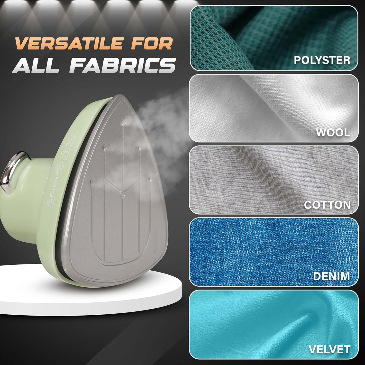 Econour 2-in-1 Mini Travel Iron & Steamer with temperature control, light indicator, and non-stick soleplate. Compact, portable, and ideal for travel, crafting, quilting, sewing, and handcraft project