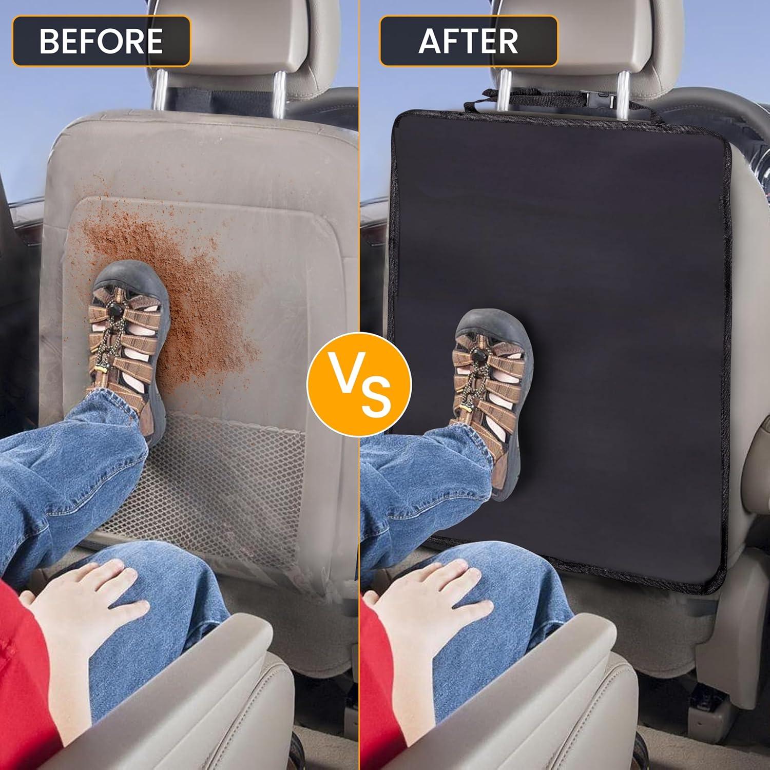 KEEP YOUR CAR SEATS CLEAN: Eliminate dirt and mess with our premium car backseat protector which is perfect for families and pet owners, this seat kick protector defends against scratches, muddy shoes, and paw prints. Our innovative anti-slip design ensures it stays securely in place, even on bumpy rides.