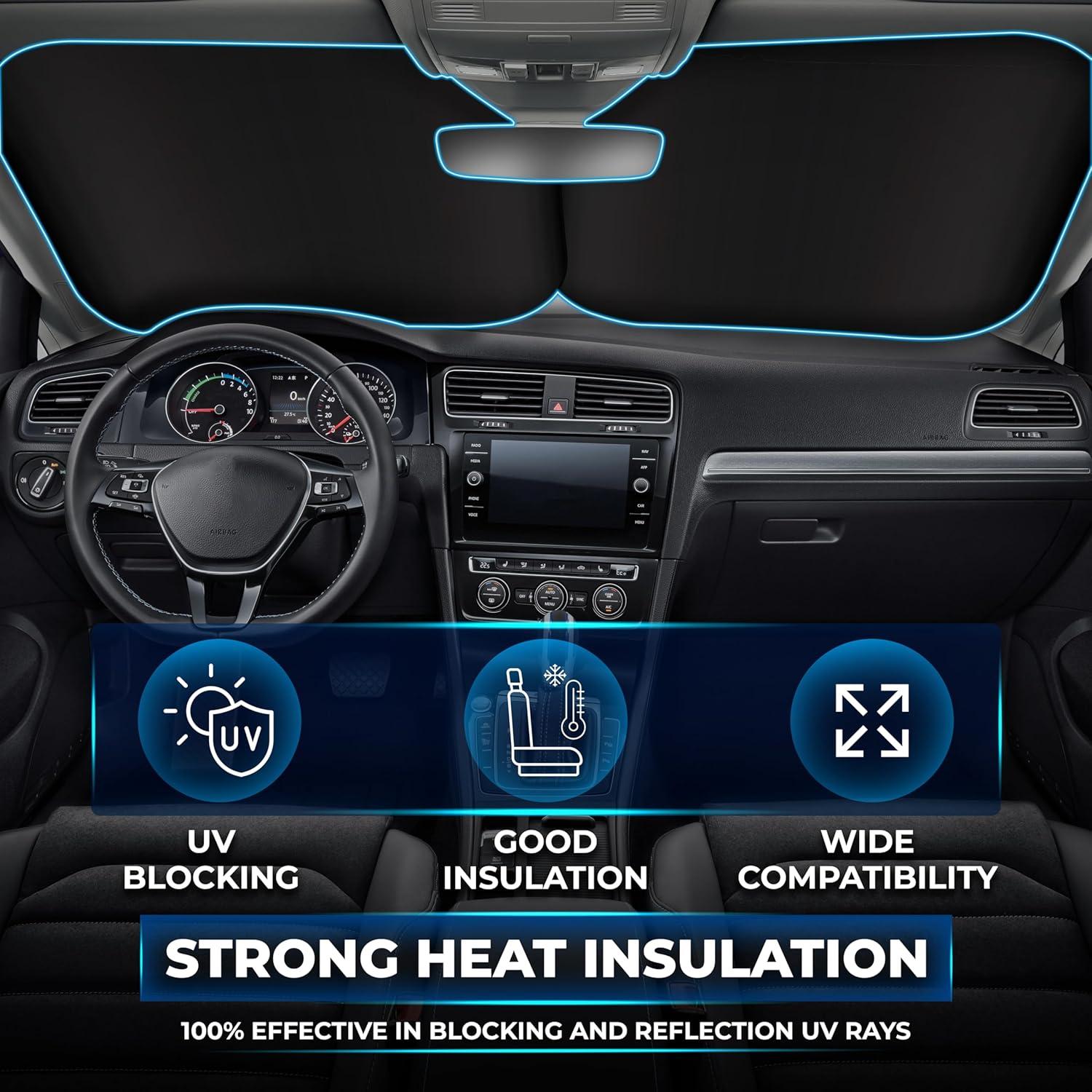 Conveniently Foldable and Compact: Effortlessly foldable and compact when not in use, our car protector sunshade is a breeze to store, ideal for on-the-go travelers seeking to maximize space within their RVs or vehicles.