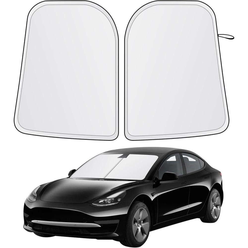 EcoNour 2-Piece Foldable Spring RV Windshield Sunshade, Reflective 240T Polyster for RVs, Trucks, Motorhomes, Bus, Side Window, XX-Large (Each 41.5 in x 50 in)(Tesla Model-3 & Model-Y)