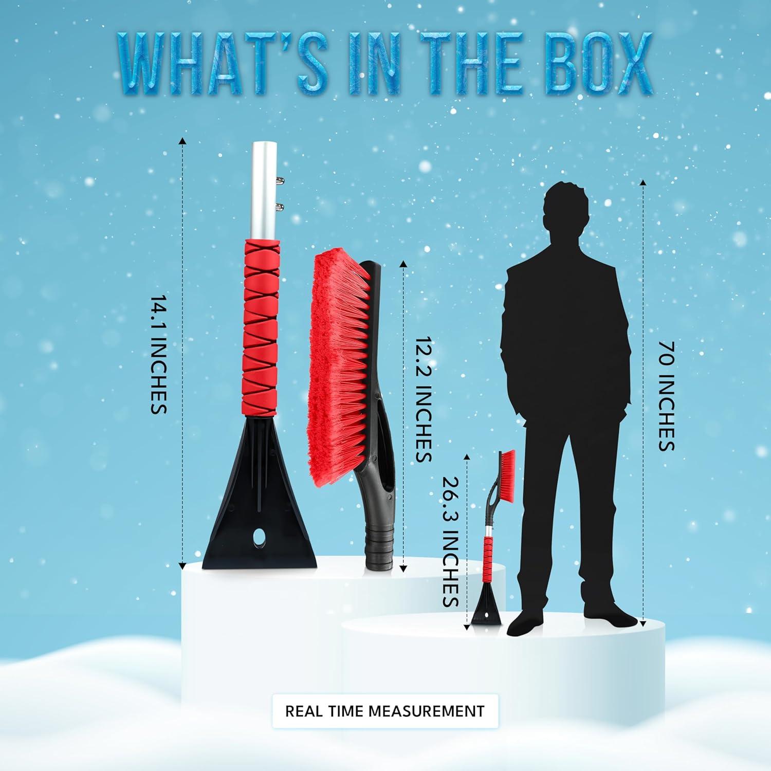 Versatile for All Vehicles: Measuring 27 inches for added reach, our car snow shovel includes a 9.5-inch brush for quick sweeping and a 4.3-inch scraper for thorough ice removal. It's the perfect snow remover for cars, ensuring you're ready for any winter weather!