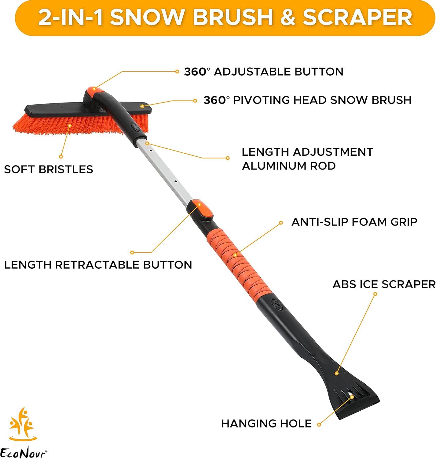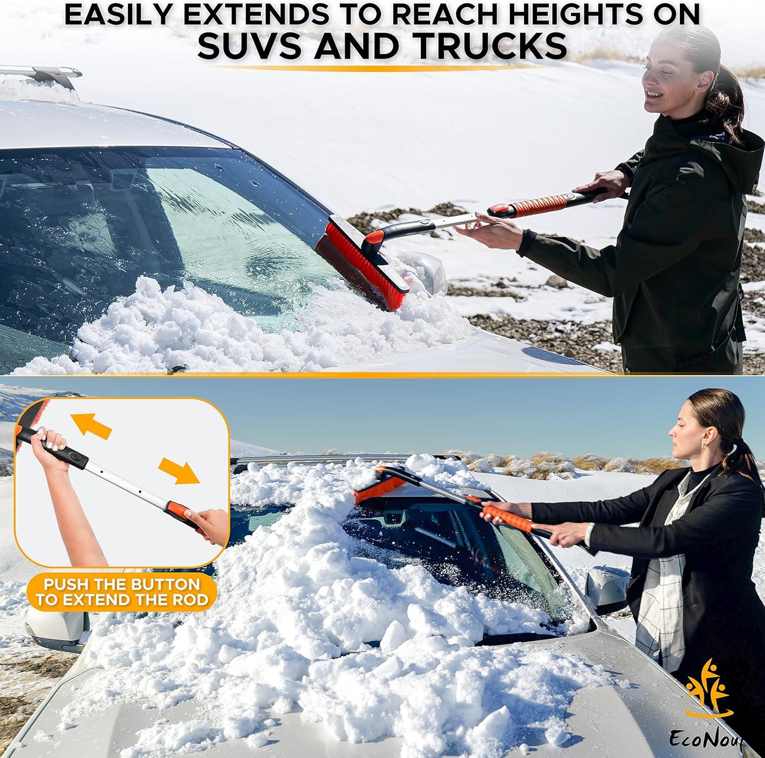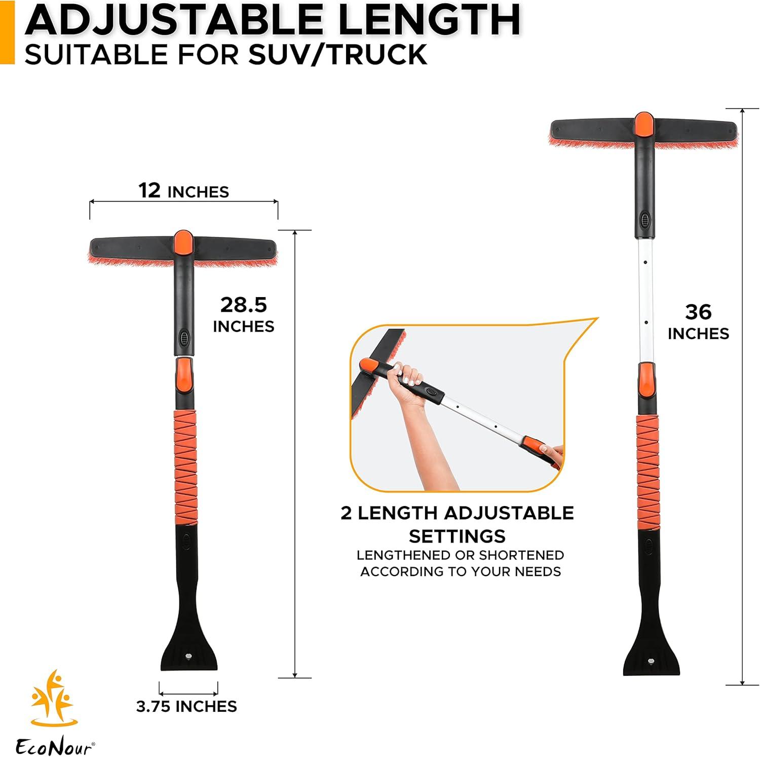 Telescopic Design for Versatile Reach! The innovative telescopic feature extends from 28.5 inches to 36 inches, enabling you to easily reach the center of your windshield and the roof of SUVs and trucks, providing flexibility during winter conditions.