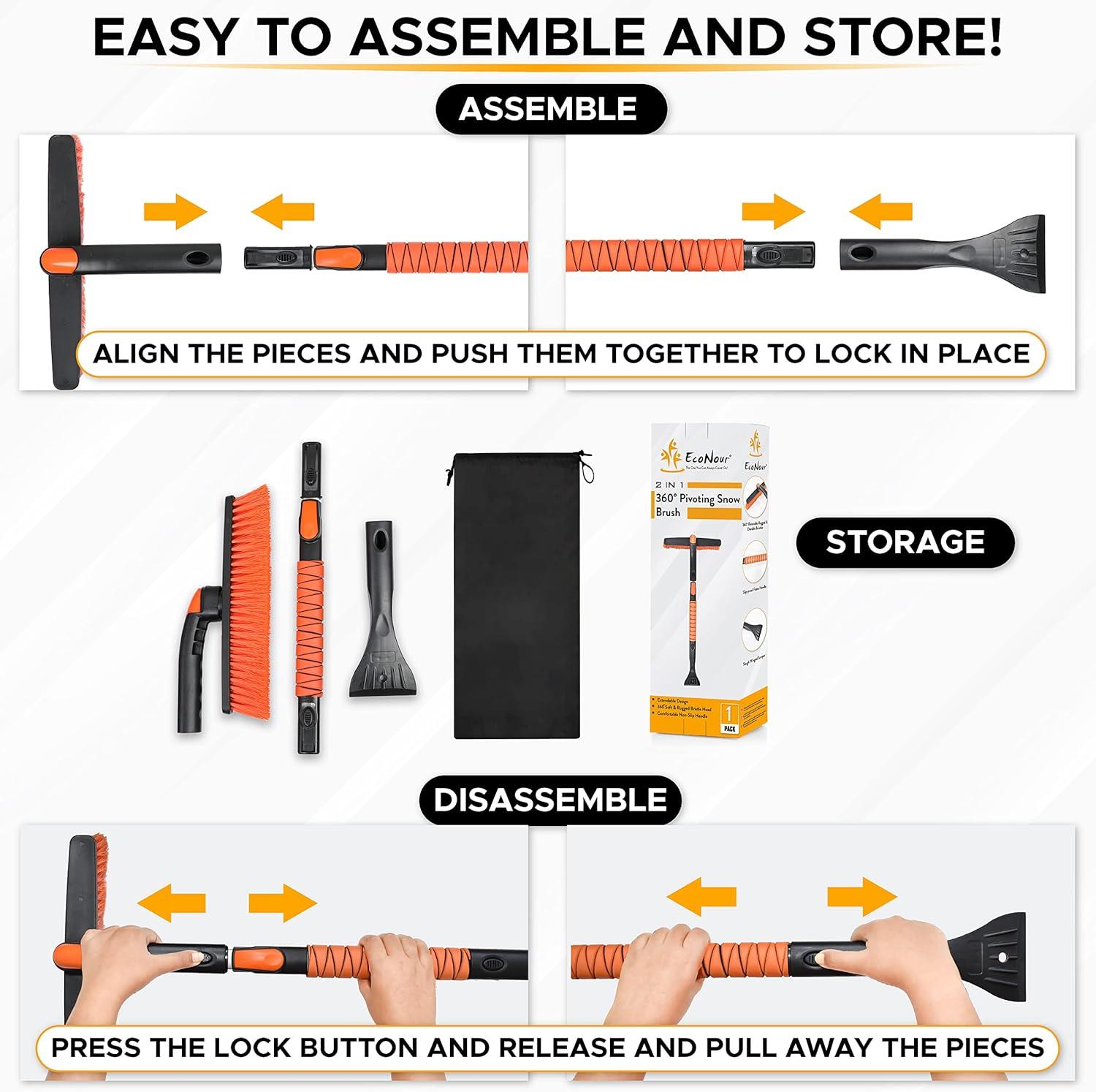 Compact and Detachable for Ultimate Convenience! Detach the snow brush and ice scraper with a simple press of the lock buttons for quick handling and storage. Its compact design fits seamlessly in your car, keeping you prepared for the toughest winter conditions.