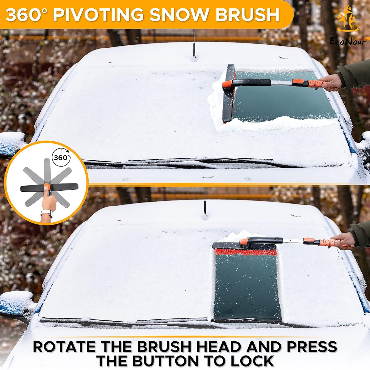 360° Rotating Head for Efficient Snow Removal! The snow brush features a 360° rotating head that pivots smoothly, allowing you to clear snow from various angles while securely locking in multiple positions for simplified snow removal.