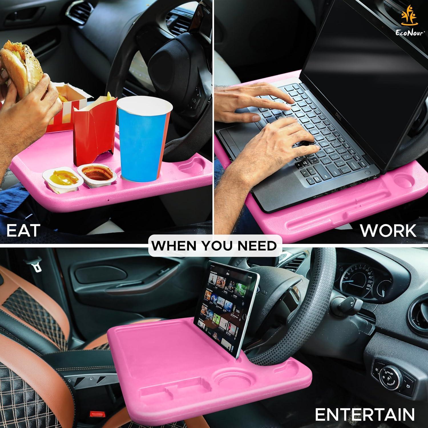 UNRIVALED STURDINESS: No more spills or wobbles! Our steering wheel tray keeps laptops and drinks secure. Elevate your work with confidence.