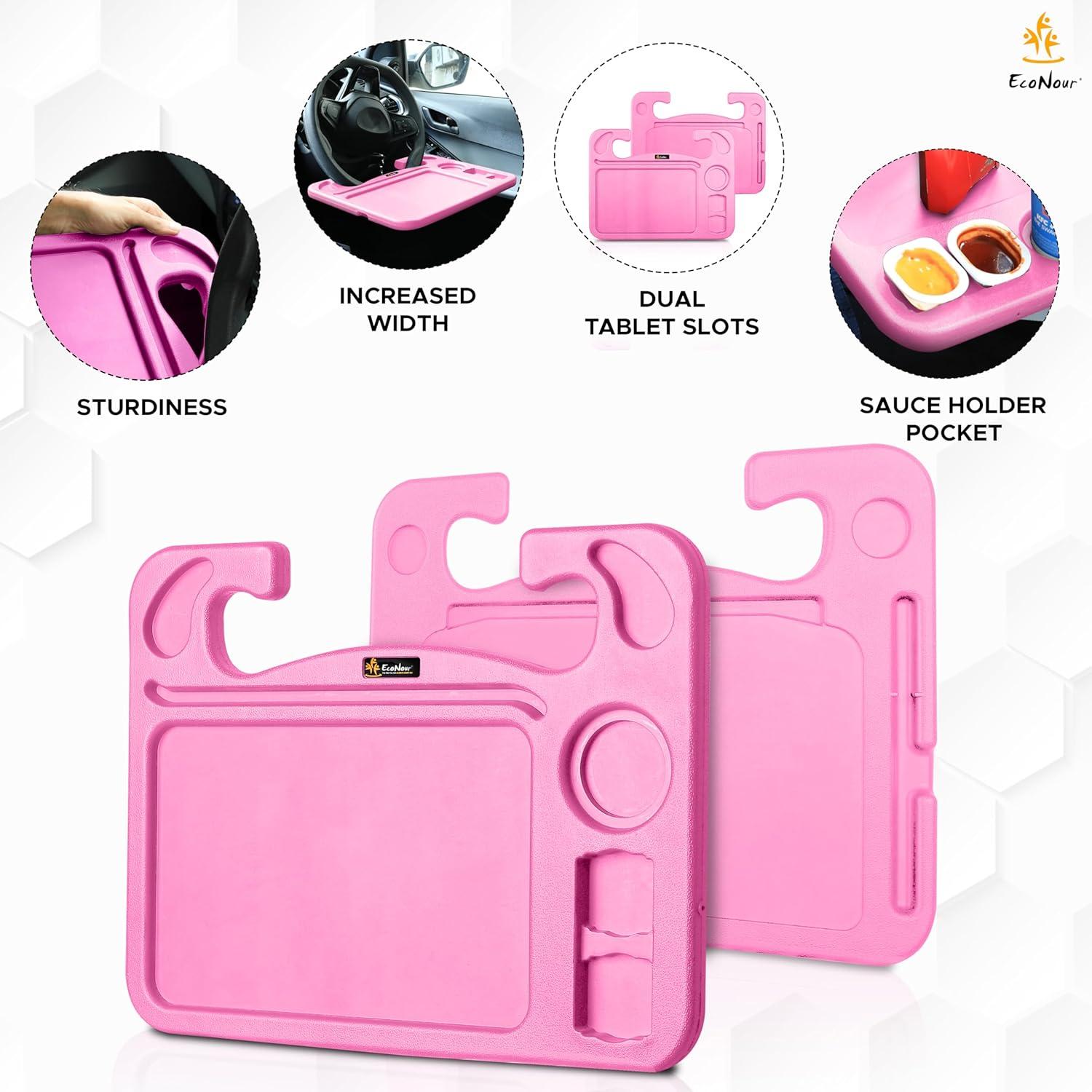 EXTRA-WIDE DESIGN: We've supercharged the car desk's width for enhanced functionality. Enjoy more space for your work, snacks, or devices, making your car your personal command center.