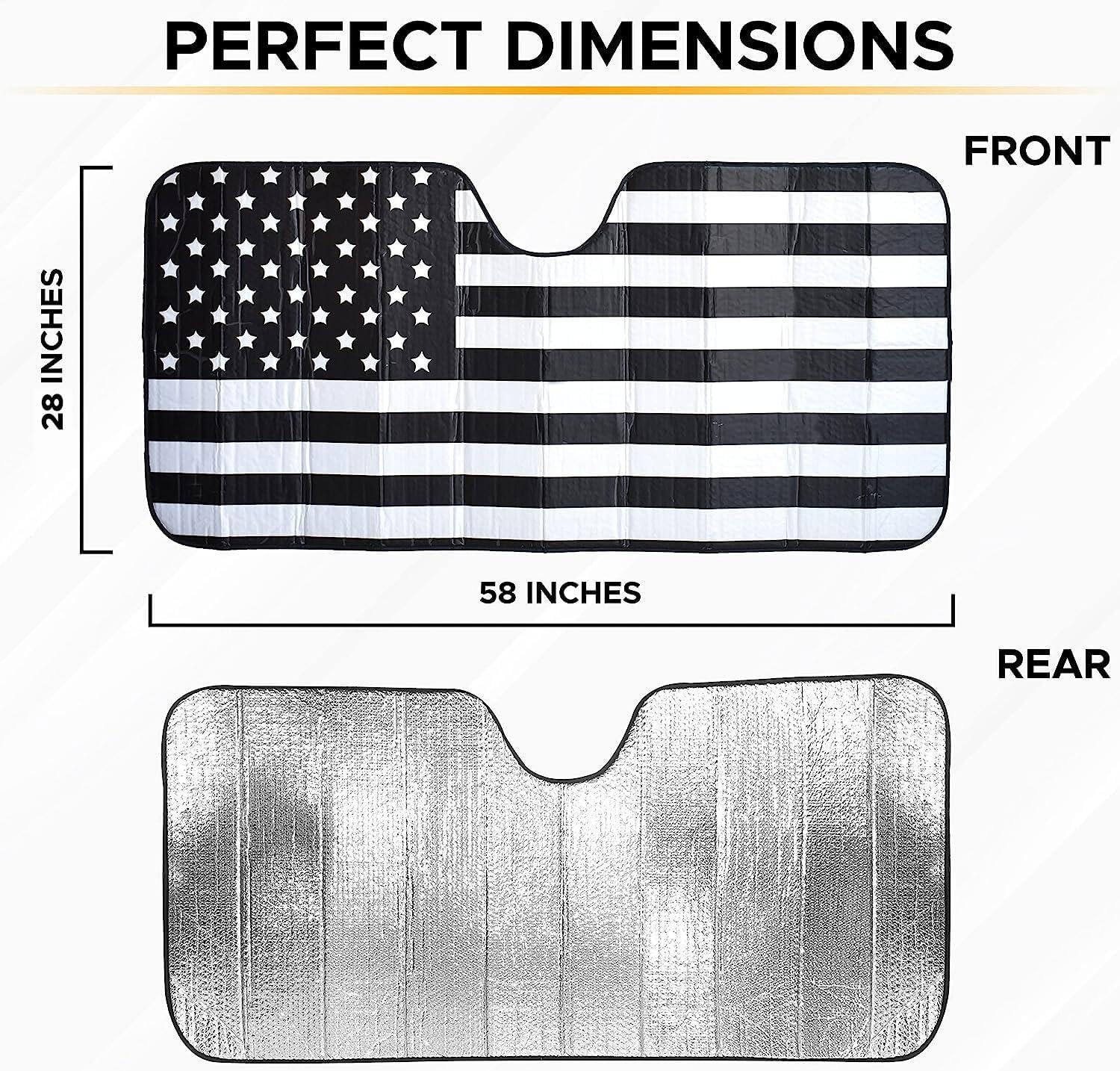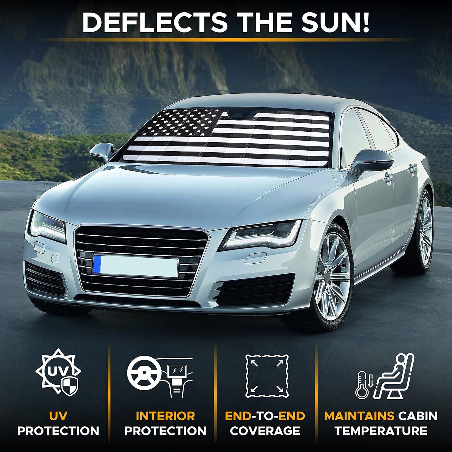 Perfect Fit for Maximum Coverage: Measuring 58″ x 28″, this car windshield shade accordion style is perfect for most cars, trucks, and SUVs. It offers complete front window sun shade coverage, helping protect seats and electronics from overheating and UV damage.