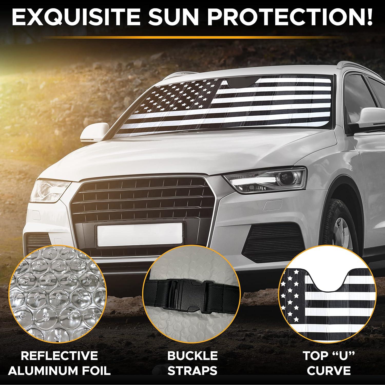 Compact, Foldable, and Easy to Store: Designed as a foldable accordion car windshield sun shade, it folds neatly and secures with a buckle strap. Lightweight and space-saving, this sun visor for car windshield easily fits into your glove box or side door pocket when not in use.