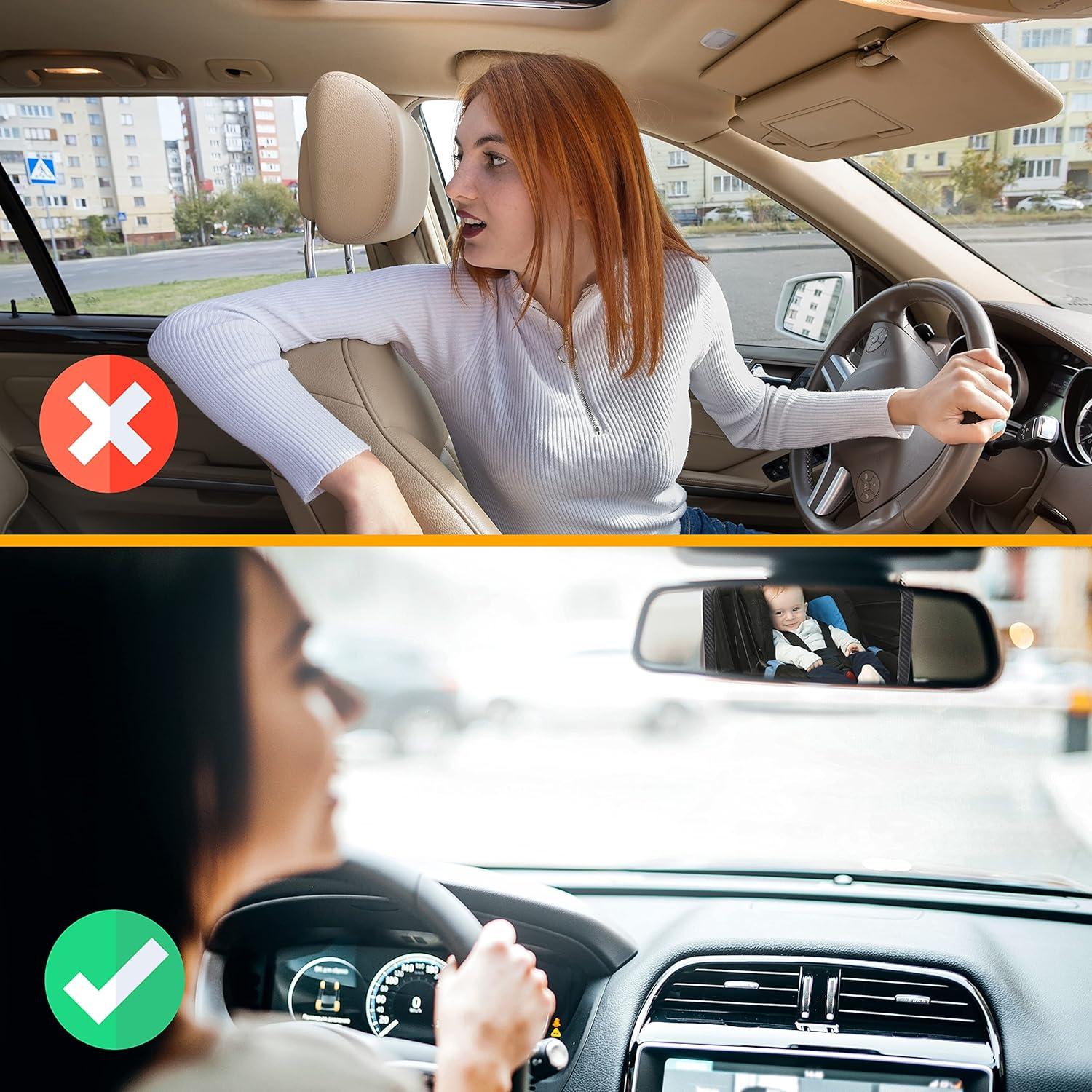 EcoNour Baby Car Mirror – 11.5 x 7.5 inches Safety Seat Mirror for Rear Facing Infant with 360 Degree Rotatable Shatterproof Design – Monitor Your Child While Driving