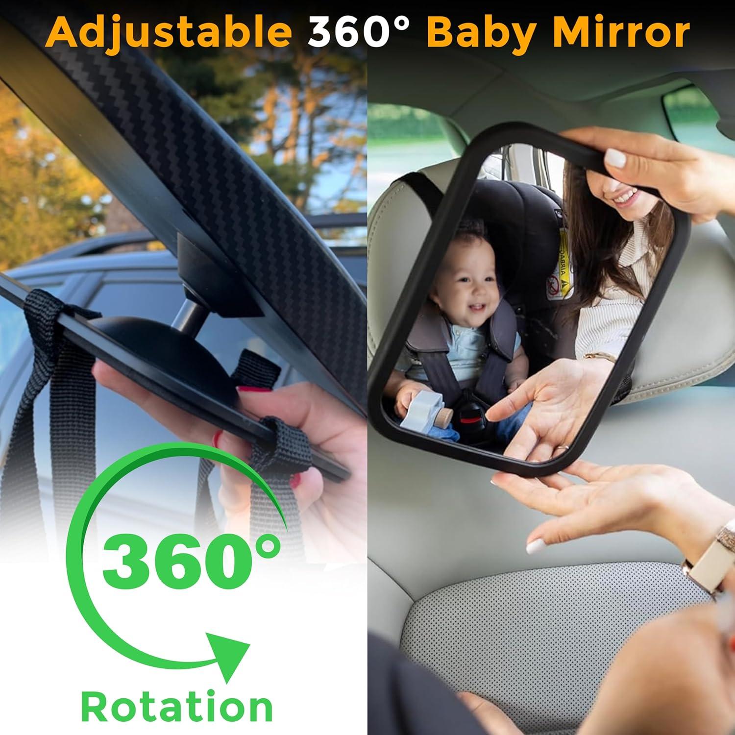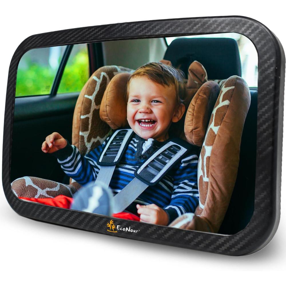 EcoNour Baby Car Mirror - 11.5 x 7.5 inches Safety Seat Mirror for Rear Facing Infant with 360 Degree Rotatable Shatterproof Design - Monitor Your Child While Driving