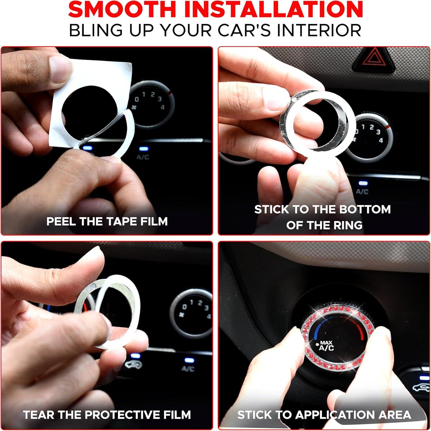 Easy Installation: Our Ring has a high-quality adhesive at the back, peel off one of the tape films, and sticks it to the bottom of the ring. Then, tear off the other side tape film and apply the bling ring to your car’s ignition button. This Push Ring can be used for car engine start/ stop pushbuttons, car a/c knobs, radio switches, etc.