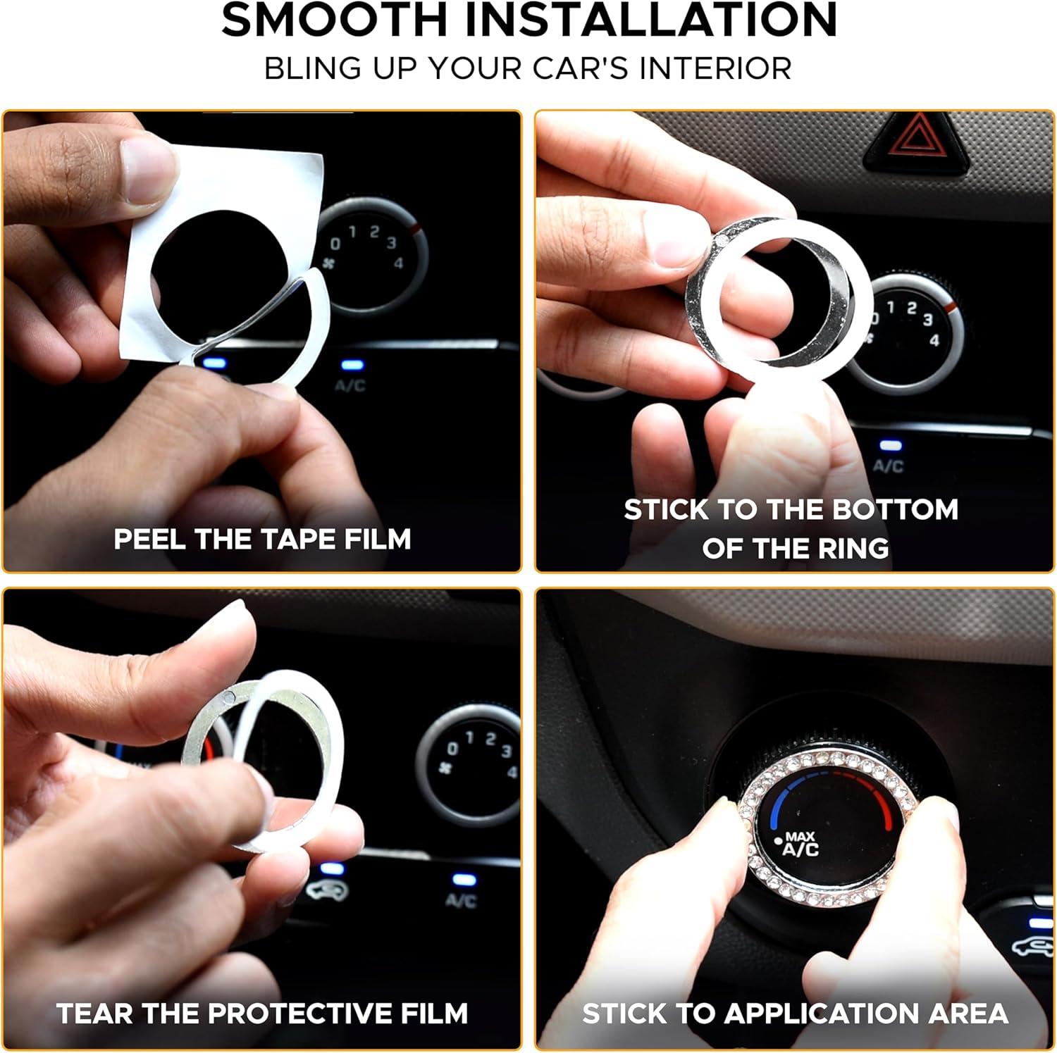 Easy Installation: Our Ring has a high-quality adhesive at the back, peel off one of the tape films, and sticks it to the bottom of the ring. Then, tear off the other side tape film and apply the bling ring to your car’s ignition button. This Push Ring can be used for car engine start/ stop pushbuttons, car a/c knobs, radio switches, etc.