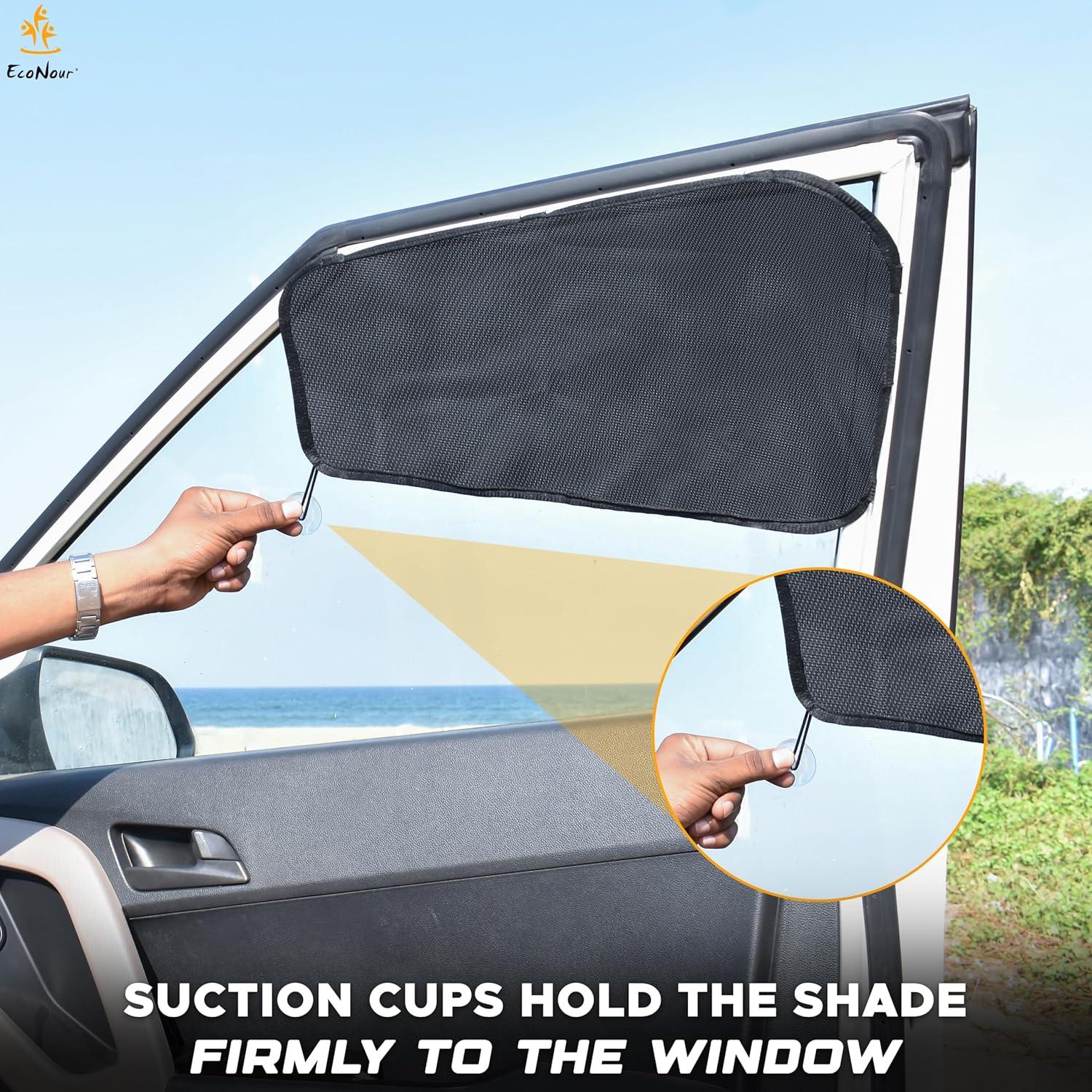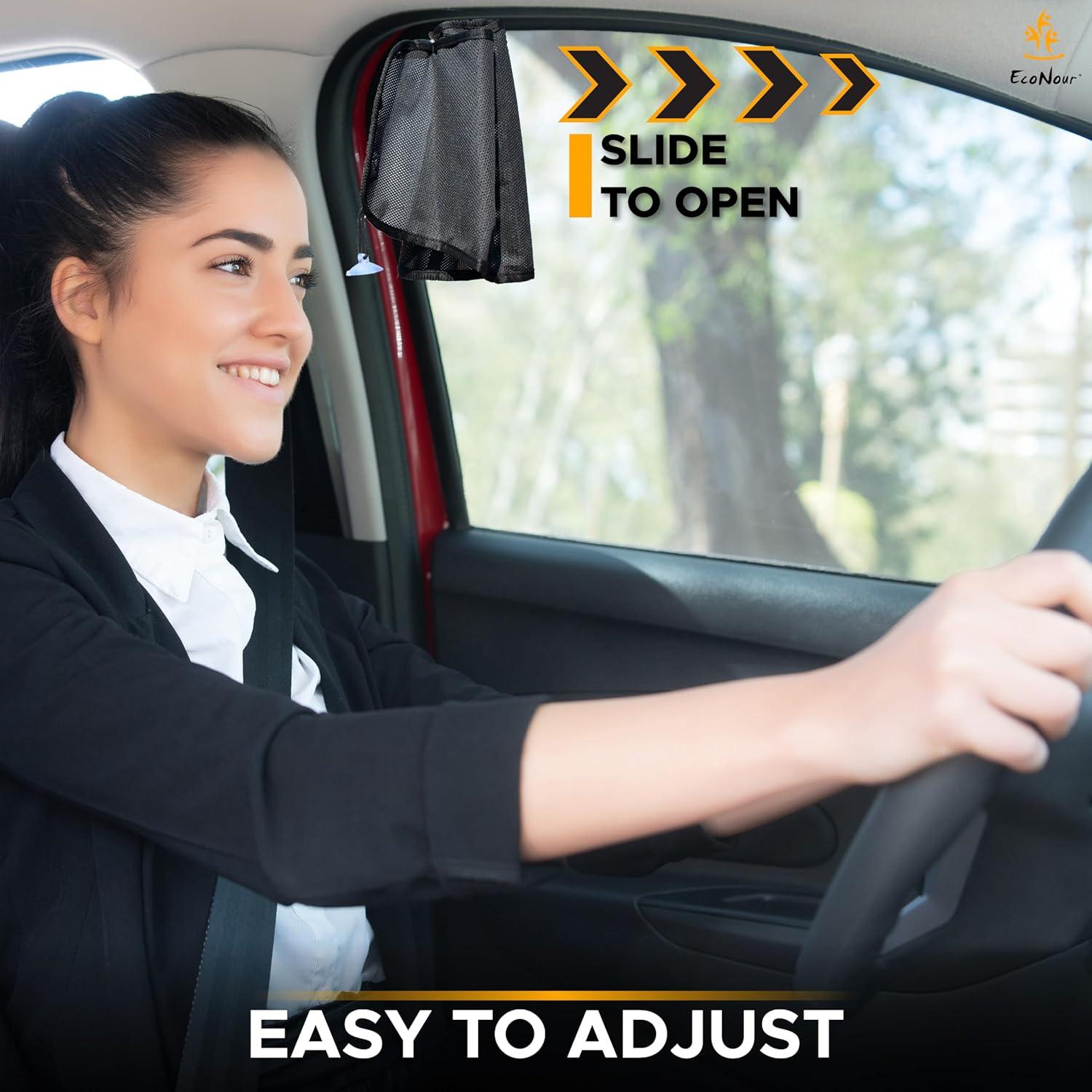 Simple to Store: EcoNour 2-piece Car Window Shade is portable and convenient to store. It can easily be opened by sliding. When the sunshade is no longer required, the side window can be rolled down without removing the curtain.