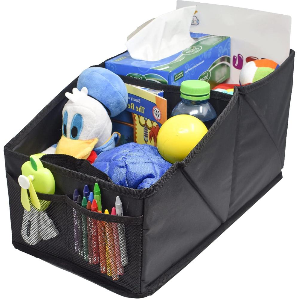 MORE STORAGE SPACE: Our toy caddy for cars is built for optimal space storage that features two main compartments, four inner mesh pockets, two outer mesh pockets and one zipper pocket.