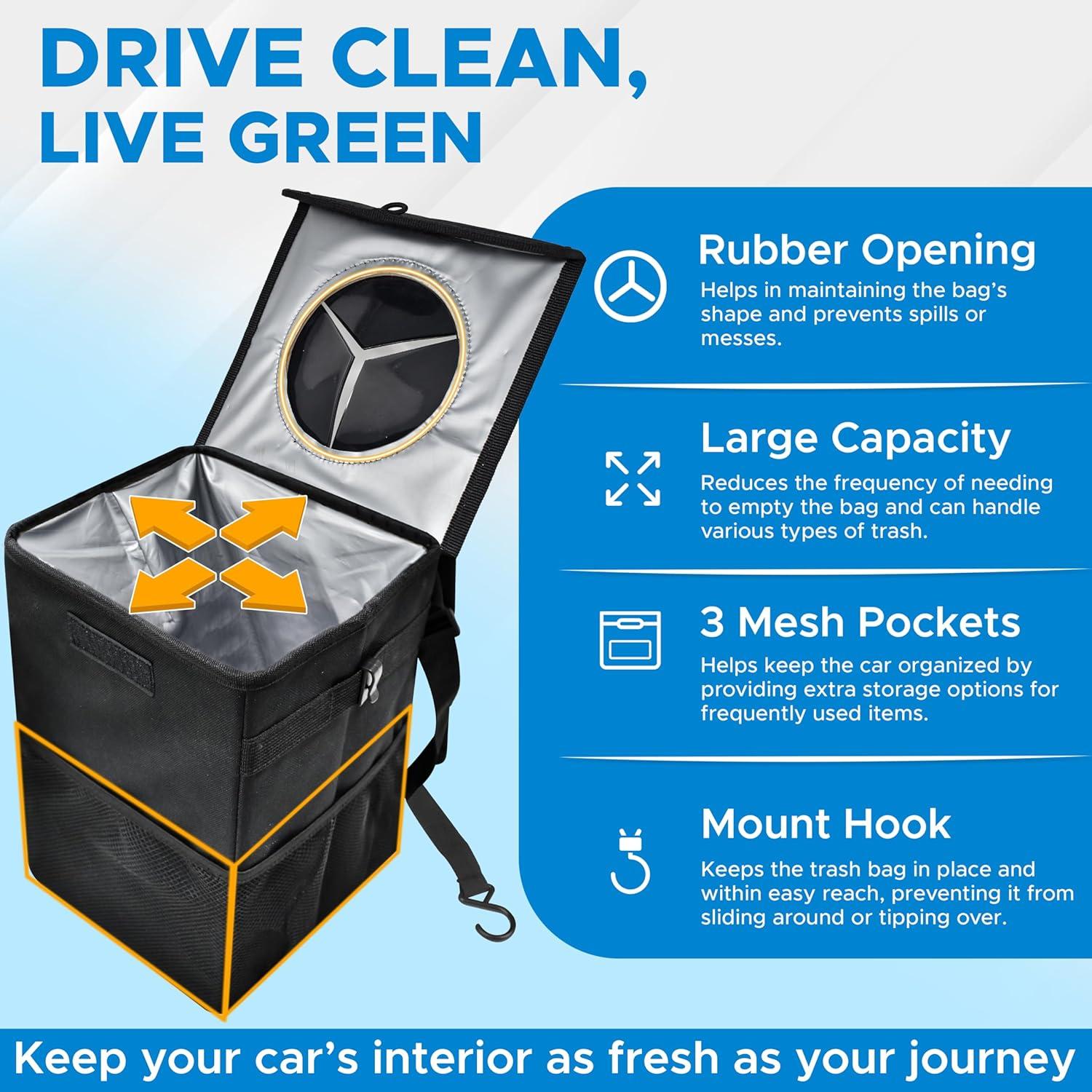 Designed For Storage: It is more than just a car trash bag; it is also a storage device for all your items to be kept in one place. This bag's side mesh pockets can hold 1.5 gallons of contents and will allow you to store excess items with significant volume easily.