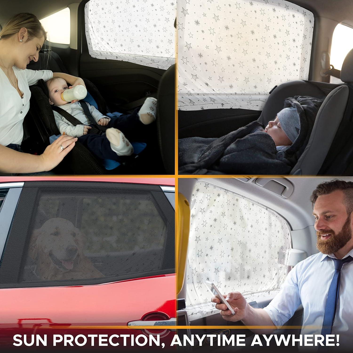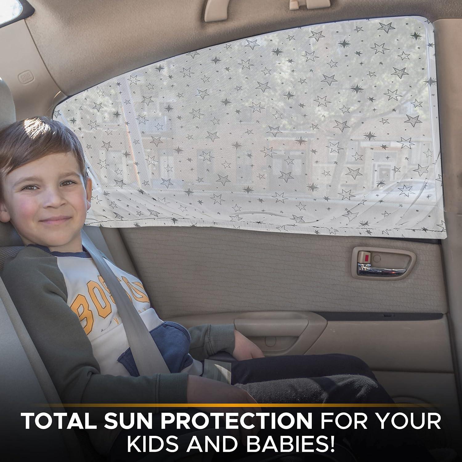 EcoNour Car Window Shades for Baby (2 Pack) - Upgraded | Shades for Side Window | Comes with Enhanced Suction Cups & Large Clips for Durability | Baby Car Accessories (15" x 17")(Rear)