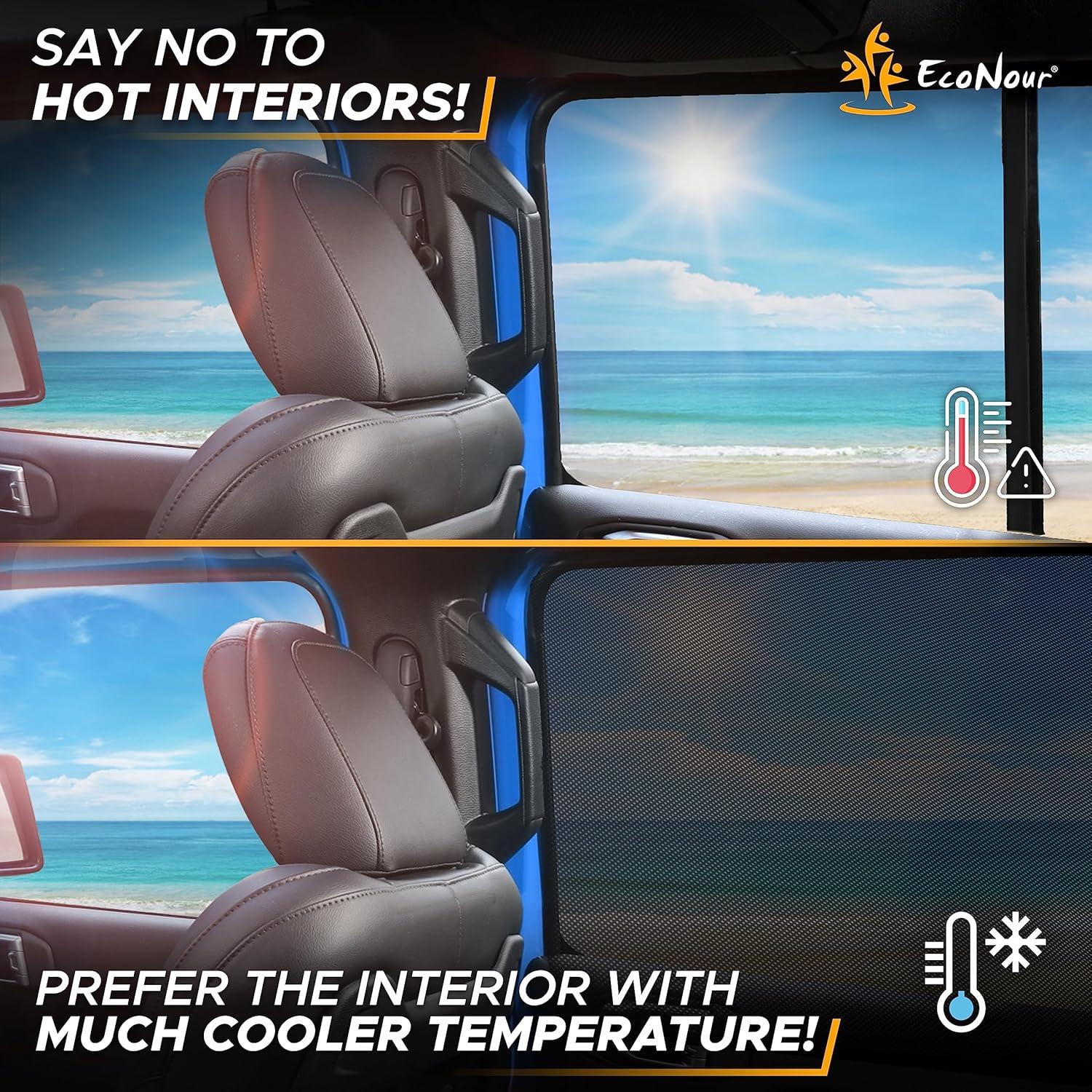 Beat the Heat on Your Seat: EcoNour Car Window Shades for car protects you completely against the sun glare, heat, and harmful UV Rays.