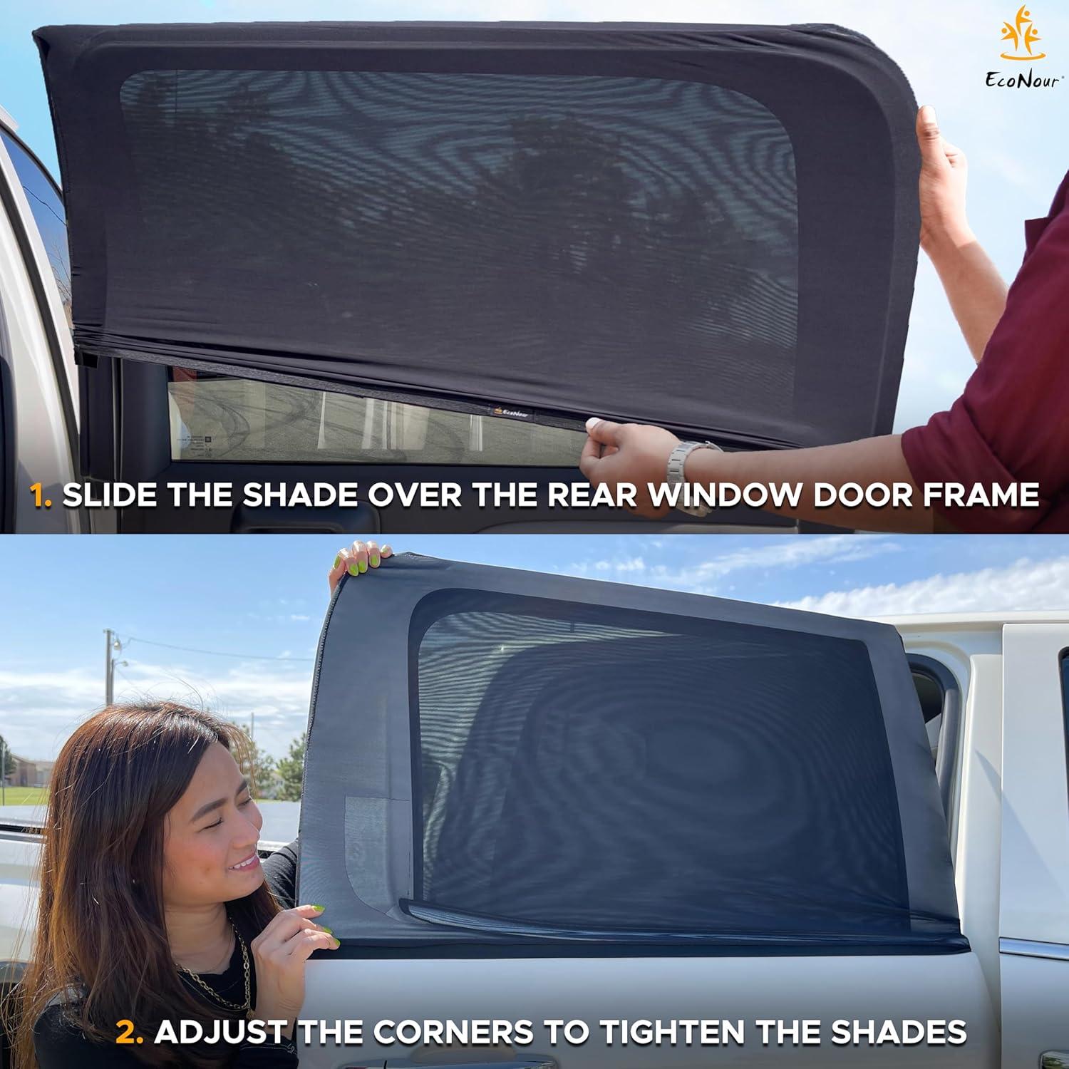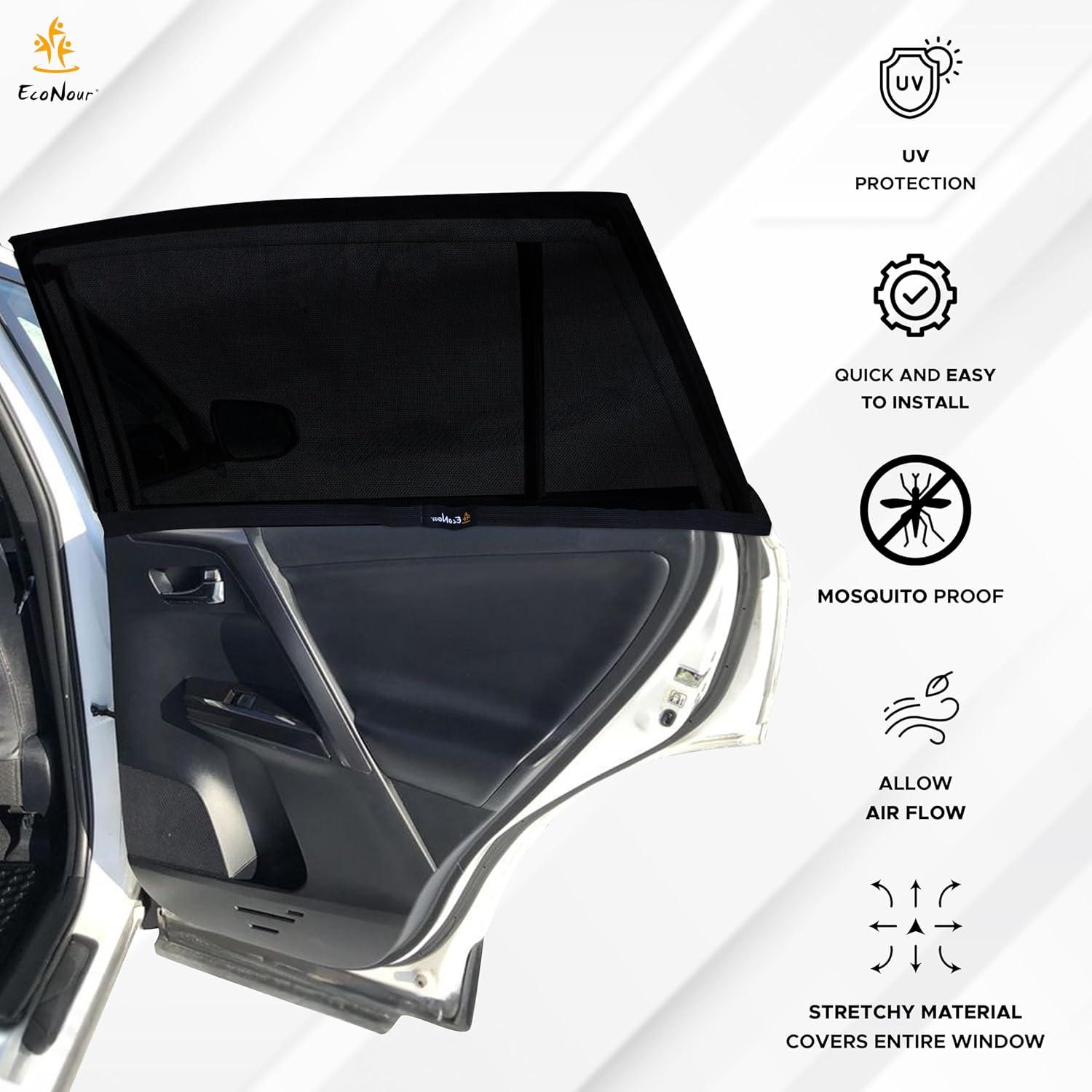 EcoNour Car Window Shades for Baby (2 Pack) – Upgraded | Shades for Side Window | Comes with Enhanced Suction Cups & Large Clips for Durability | Baby Car Accessories (15″ x 17″)(Rear)