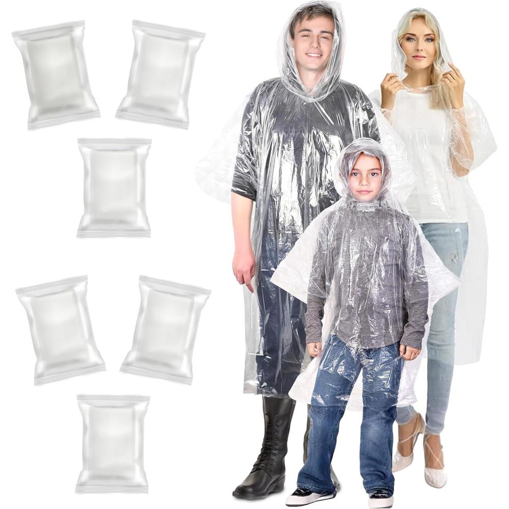 EcoNour Clear Rain Ponchos Family Pack | Emergency Clear Ponchos with Hood for Kids & Adults | Perfect for Disney World(Transparent (3 Kids /3 Adults))