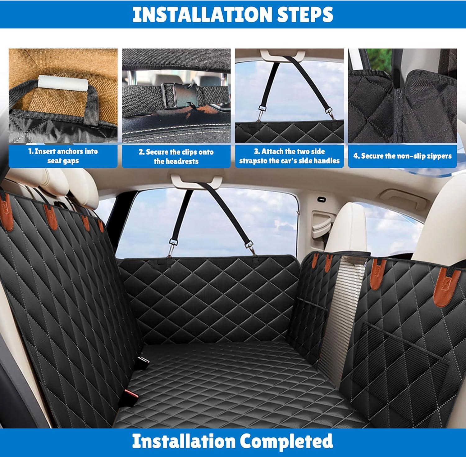 Convenient Mesh Pockets & Easy Maintenance: Built-in mesh pockets provide handy storage for leashes, toys, or grooming supplies. This dog car seat cover for back seat is easy to install with hooks to connect easily and simple to clean with a damp cloth or in the washing machine.