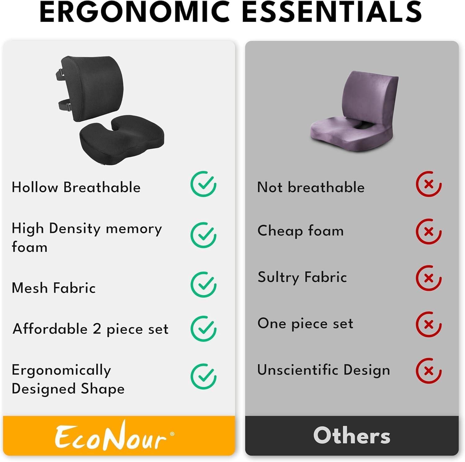Pain Relief & Maximum Comfort: EcoNour gel seat cushion (18 x 17 x 1.45 inches) is designed with a double-layer gel structure to provide exceptional comfort and support. It helps alleviate discomfort from tailbone pain, sciatica, lumbar strain, and degenerative disc disease, making it perfect for long periods of sitting.