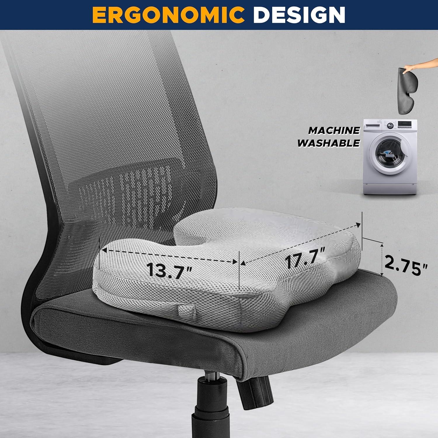 Breathable & Removable Mesh Layer: The removable top mesh layer is breathable and can be machine-washed. This prevents the coccyx cushion from getting dirty and stays fresh all-day.