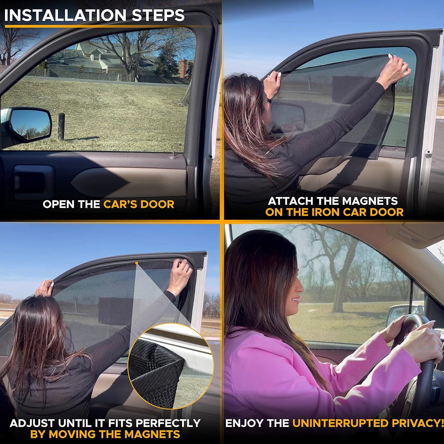 Effortless Installation: Our Universal Car Window Screen comes for both front and rear windows. Stick the magnets to the metal frames of your windows and adjust until they fit well (Note: Use only while the windows are closed).