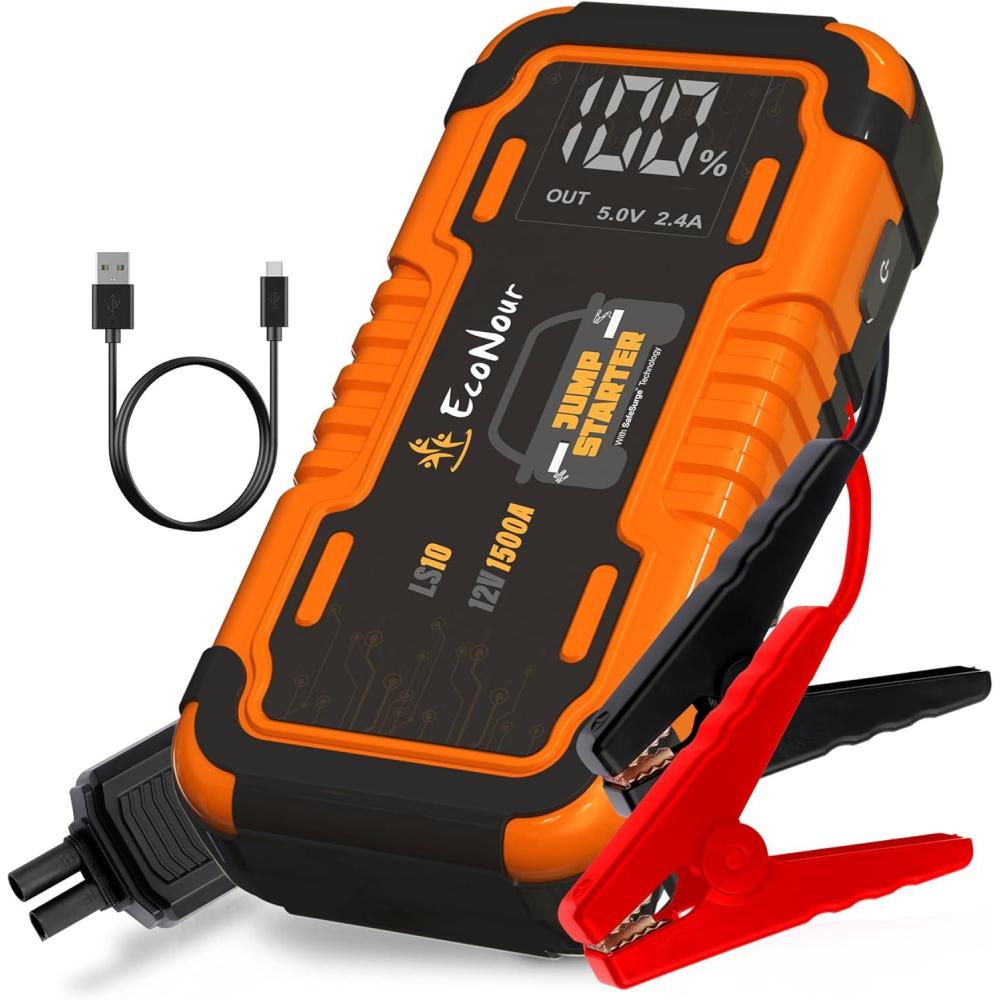 EcoNour Portable Car Battery Jump Starter | 1500A Jump Starter | Car Battery Booster with LED Flashlight & Charger Cable | Ideal Up to 7L Gas/5.5L Diesel Engines | Compatible with Honda, Toyota & Ford