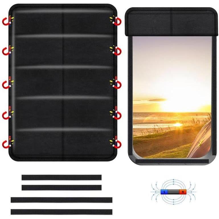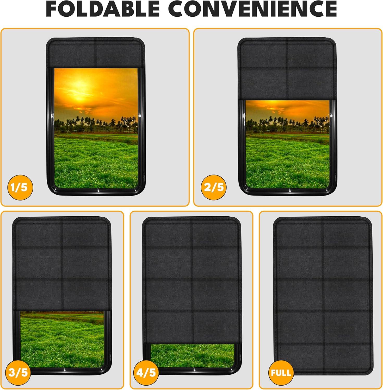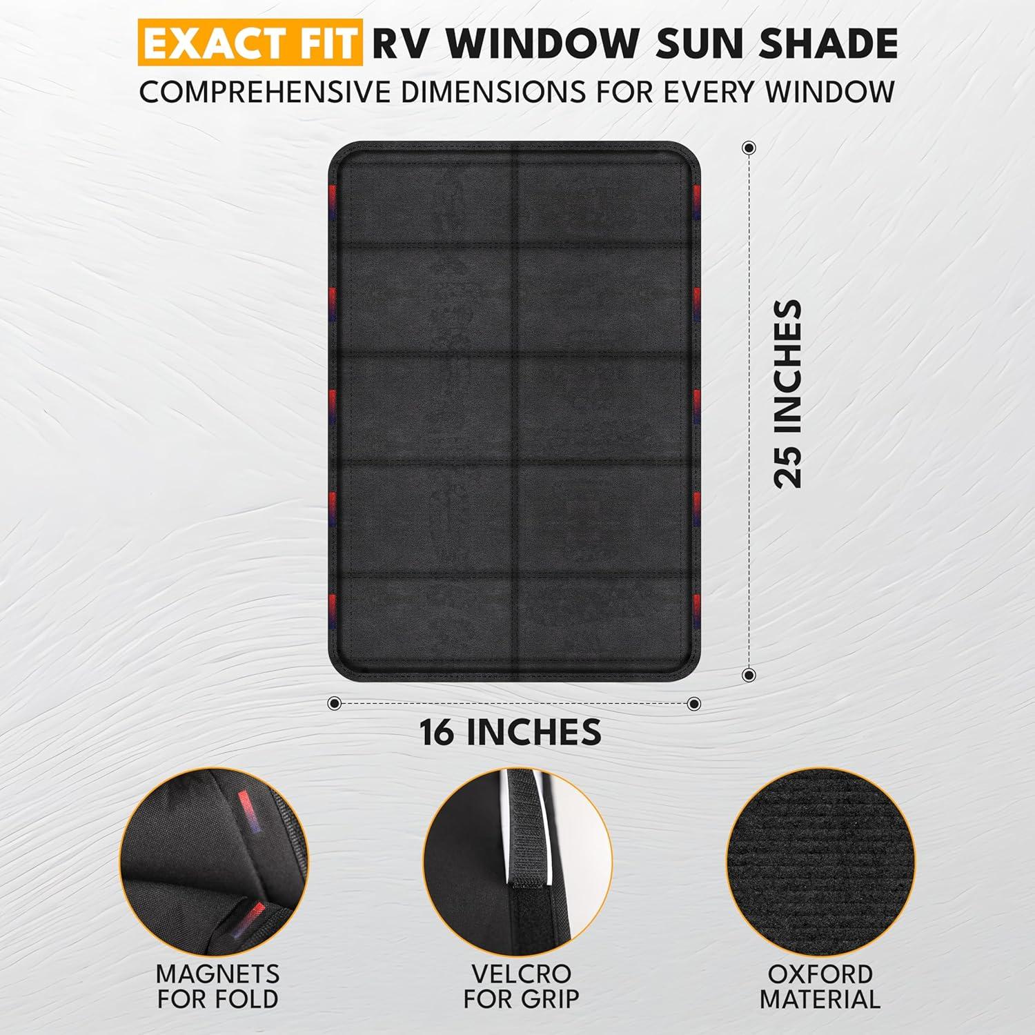 Collapsible RV Window Shade Cover: Introducing our specifically designed 27 × 18 Inch Window Shade Cover, crafted to fit perfectly on vehicle-specific windows like the Winnebago Itasca Sunova Class A RV entrance door. Our magnetic collapsible design offers customizable blackout heights, ensuring privacy without sacrificing your scenic views.