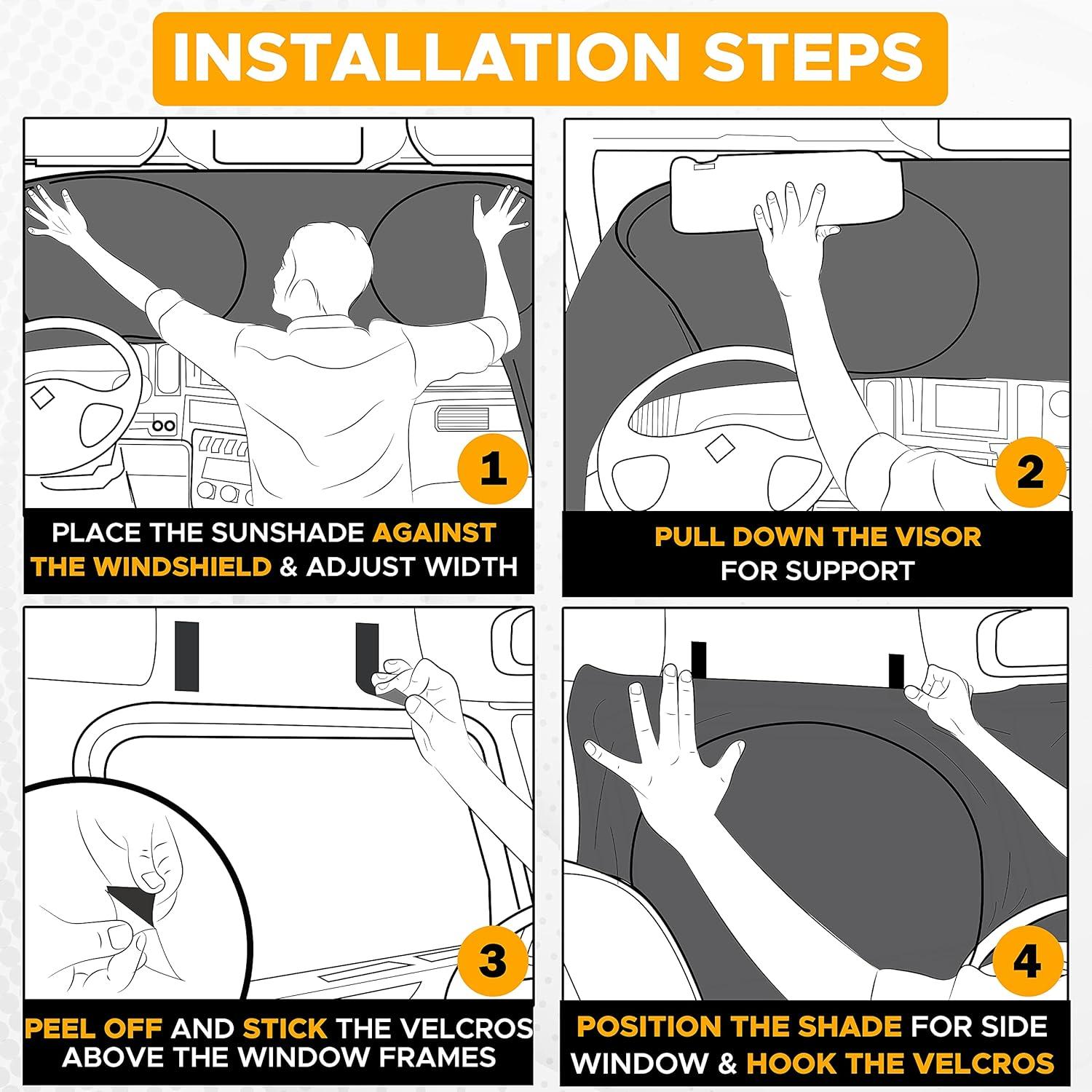 Compatibility: This auto truck sunshade for truck windshield and side windows is compatible with most Semi, Commercial, and Big Rig Trucks. Make sure to measure your vehicle’s windshield dimensions before ordering.