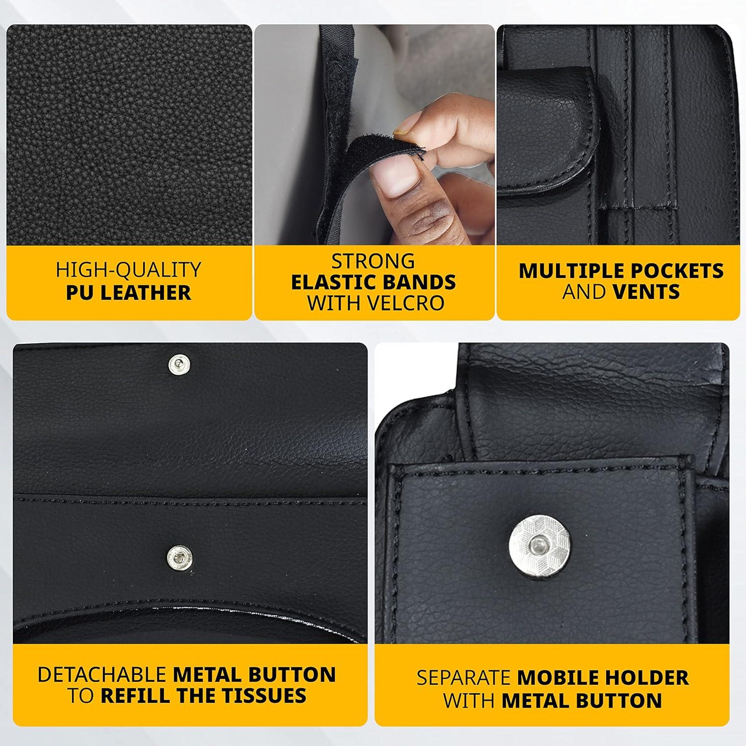 Perfect Design with a Classy Look: This Car Visor Tissue Holder is made out of PU leather and keeps tissues, napkins, and masks organized. Our mask dispenser for car features a perfect cutout to remove the tissues as well as a metal button to refill the tissues.