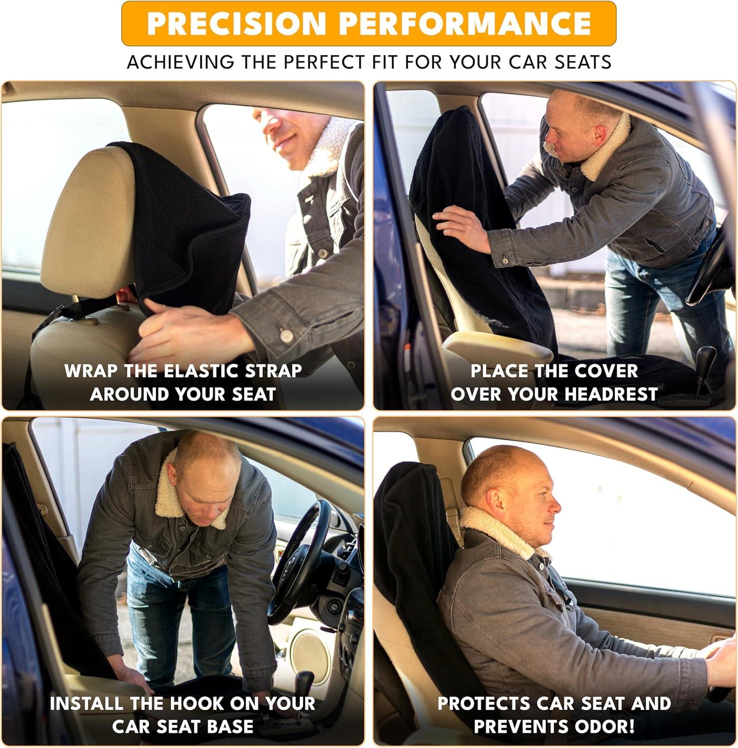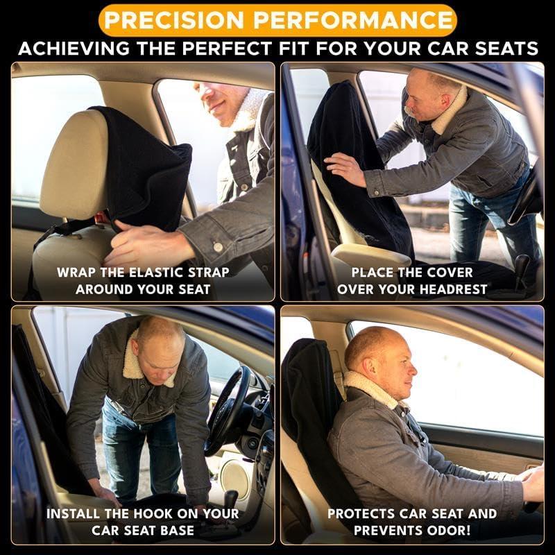 Quick & Simple Installation: Setting up the EcoNour car seat cover is hassle-free—just slip the cover over your headrest and secure the sweat towel with a robust elastic strap for a snug and secure fit. Whether you're in a rush or planning ahead, this easy setup ensures you’re ready for the road in no time.