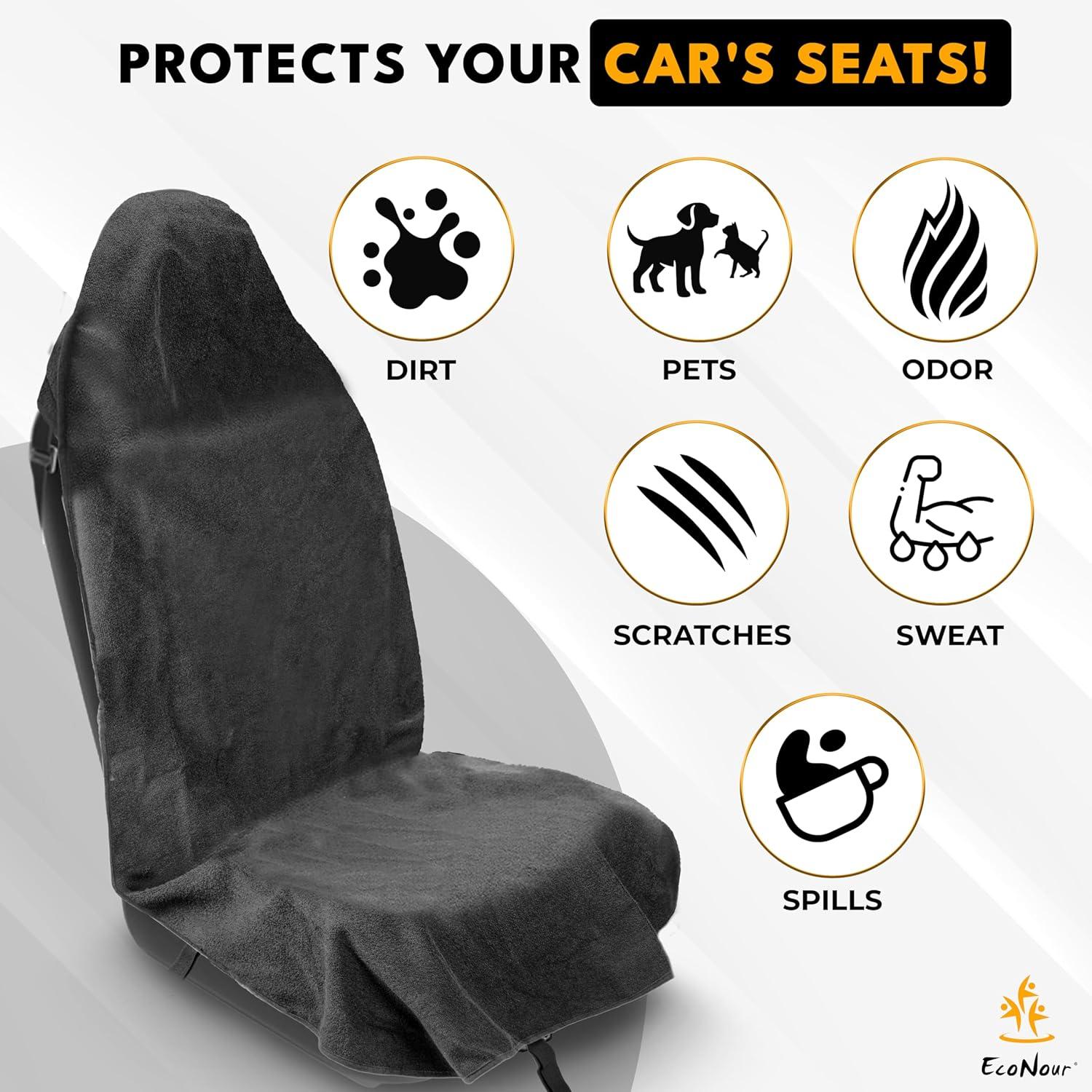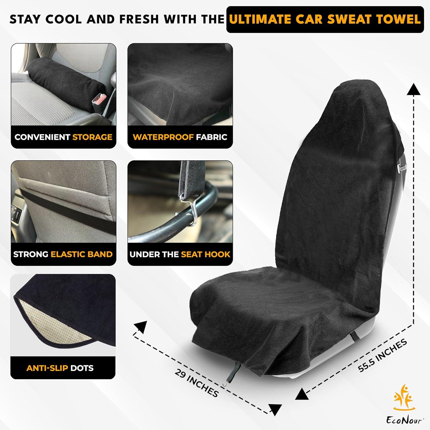 Ultimate Comfort on the Go: The EcoNour Car Seat Sweat Cover offers a full comfort solution, complete with a bonus seat belt cover pad for added convenience. Whether you're heading to the gym, embarking on a road trip, or simply running, this all-in-one set ensures you are always comfortable and ready for the road ahead.