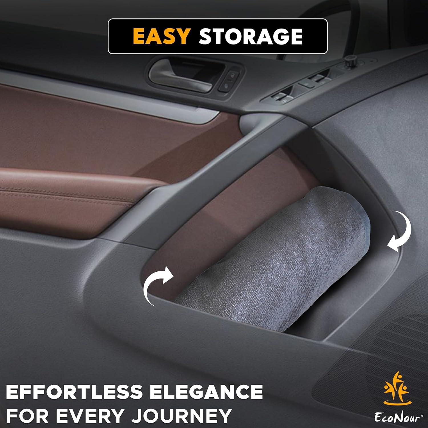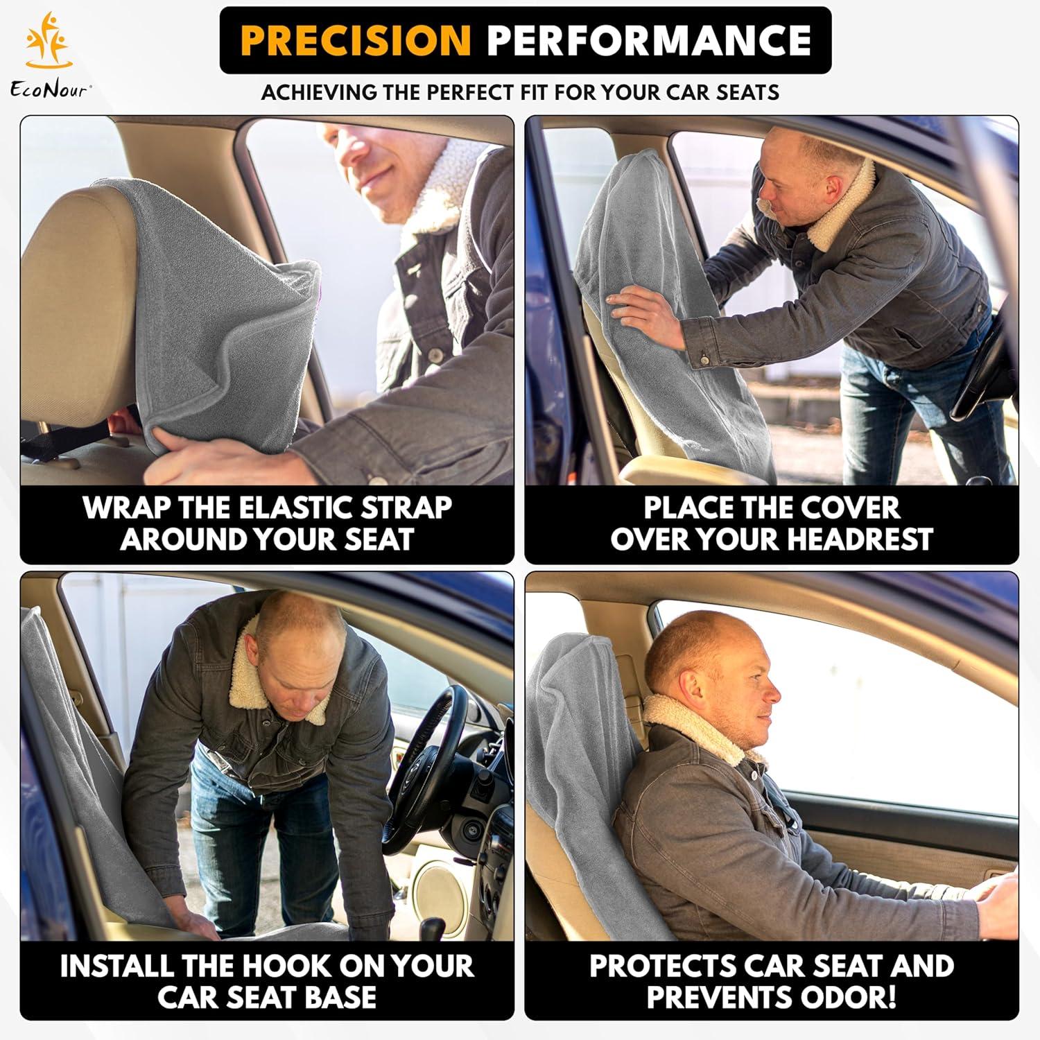 Quick & Simple Installation: Setting up the EcoNour car seat cover is hassle-free—just slip the cover over your headrest and secure the sweat towel with a robust elastic strap for a snug and secure fit. Whether you're in a rush or planning ahead, this easy setup ensures you’re ready for the road in no time.