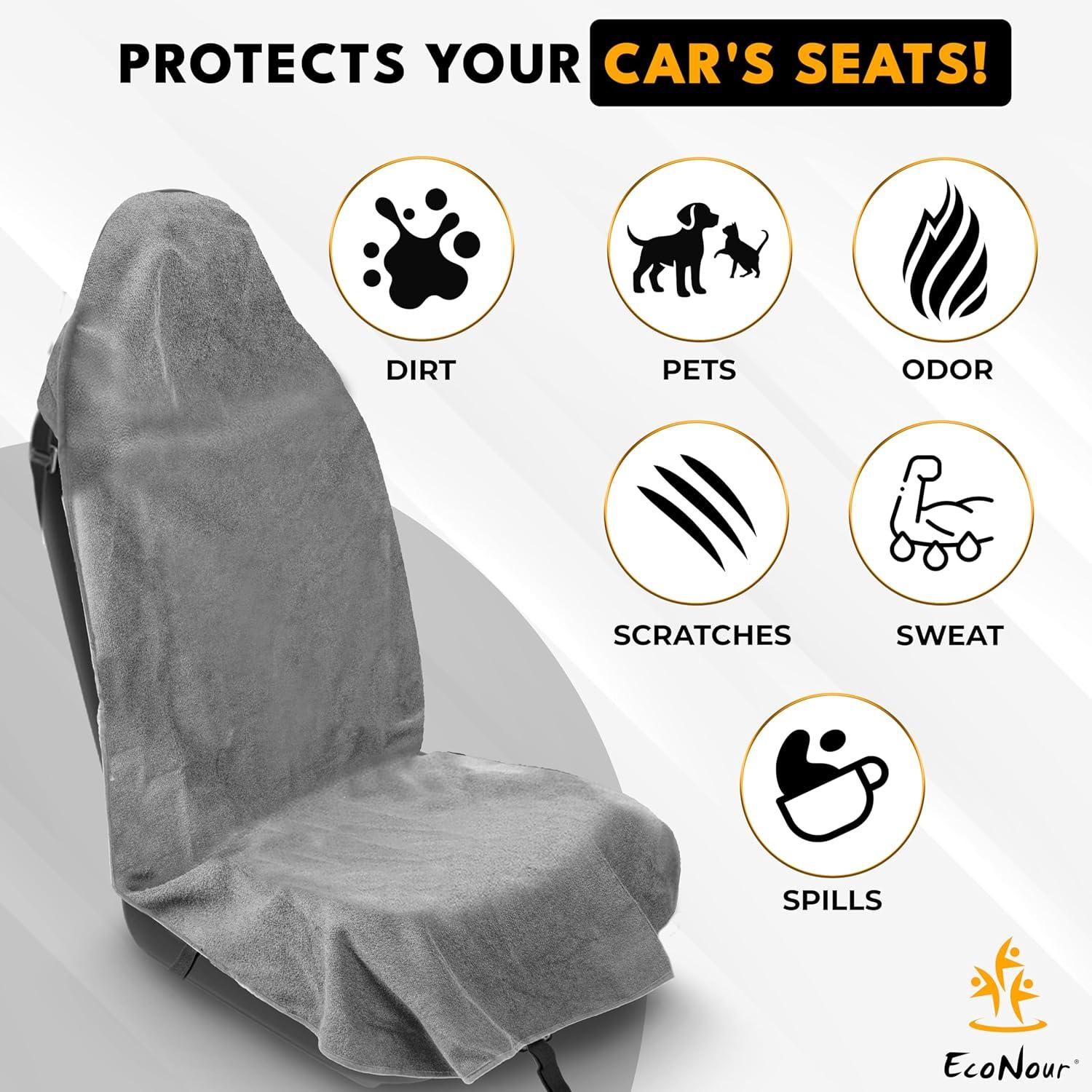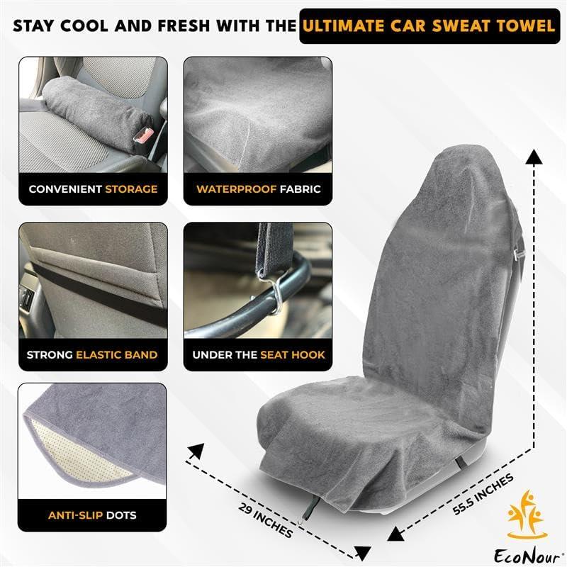 EcoNour Sweat Towel Car Seat Cover with Belt Shoulder Pad | Washable Car Seat Protector from Sweat, Food, Dirt, Gym, Swimming, Workout | Waterproof Universal Seat Cover for Car, Truck, Van & SUV(Grey)