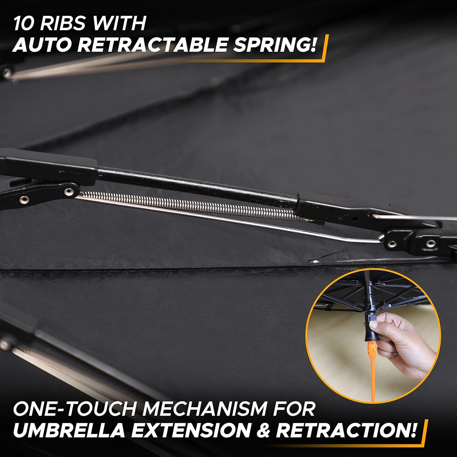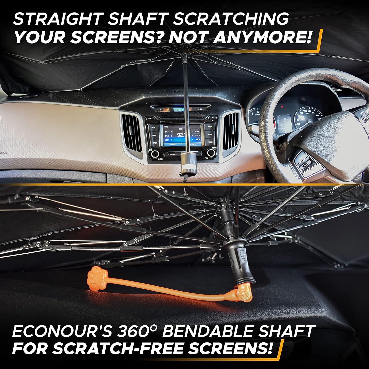 EcoNour Umbrella Sunshade for Car | Upgraded Bendable Silicone Shaft for Scratch-Less Dashboard | Designed with Auto Retraction Spring for Easy Folding| One-Touch Button Closure for Easy Removal(X-Large)