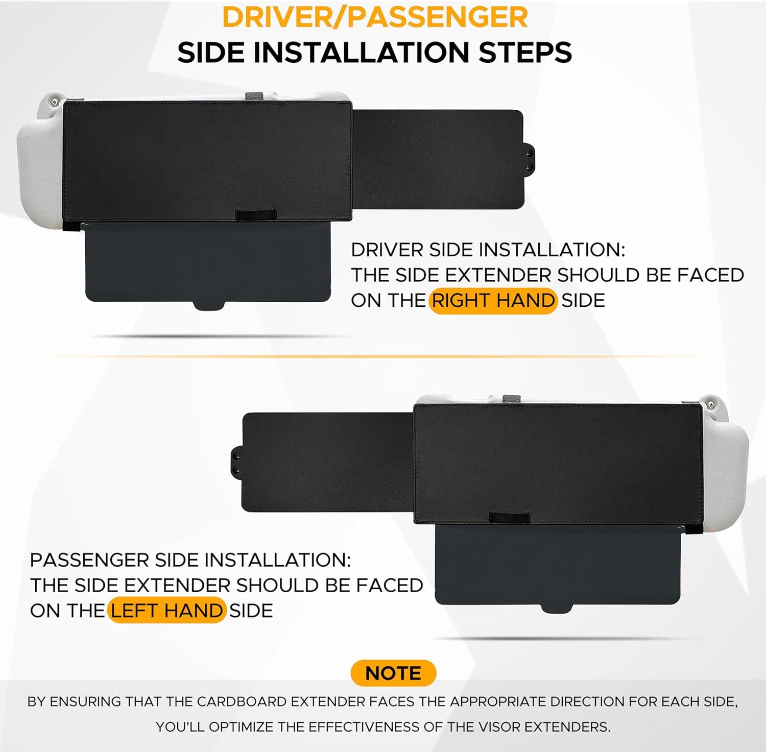 Multipurpose Use: The car visor extender extends enough, allowing a clear view of the road from the driver's side. You can use our extender on both the front window and side window of the windshield. Almost all cars, SUVs, and trucks are compatible with this Car Visor Extender.