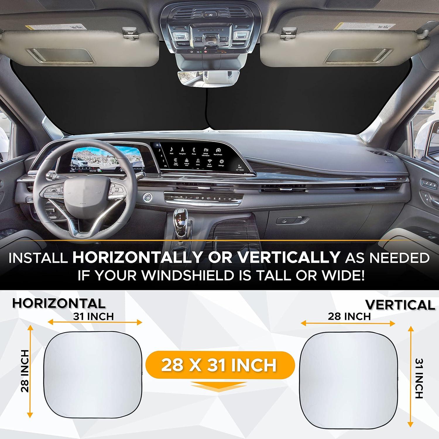 End-To-End Coverage: EcoNour’s Car Sun Shade for Windshield features a two-piece identical rectangular sunshade (28 x 31 inches) that can give full coverage to your entire windshield. To fix it perfectly, you can install it either vertically or horizontally.