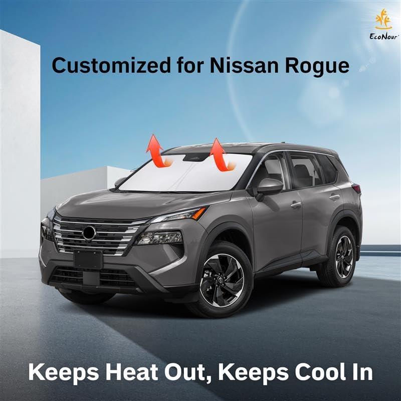 Precision Fit for Nissan Rogue (2014–2020) – Custom-designed front windshield sun shade specifically made to fit all Nissan Rogue models from 2014 to 2020, including S, SV, SL, and hybrid variants. This reflective windshield cover is tailor-cut for a glove-like fit, offering full coverage without gaps. It's the ideal sunshade accessory for your compact SUV, built to block heat, UV rays, and glare year-round.