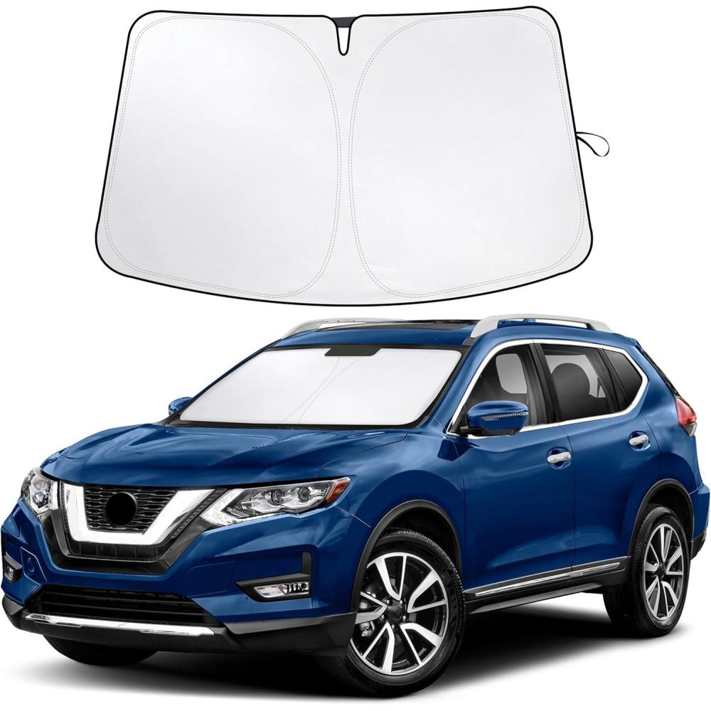 Advanced UV and Heat Protection – This car sun shade for SUVs is crafted from premium 240T silver-coated fabric for superior UV defense and interior protection. It shields your Rogue’s dashboard, upholstery, and electronics from fading, cracking, and warping. Acting as both a heat blocker and sun visor protector, this front windshield shade helps preserve your vehicle’s resale value and enhances driving comfort during hot summer days.