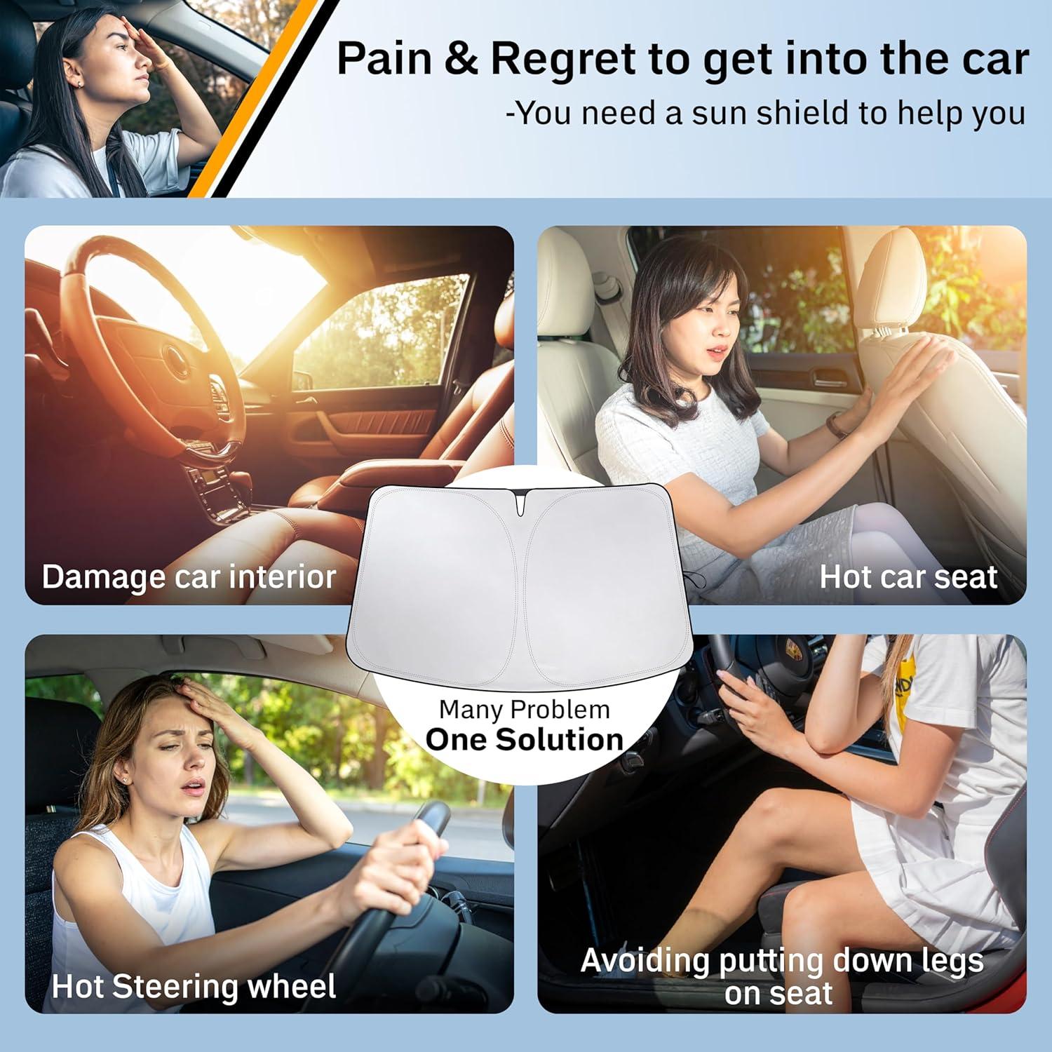 Advanced Dual-Layer Thermal Shield – The sunshade features a dual-layer design with a reflective silver exterior to deflect sunlight and a black heat-absorbing lining to trap heat. This significantly reduces cabin temperatures, ensuring a cooler, more comfortable interior during summer drives or when parked in direct sunlight.