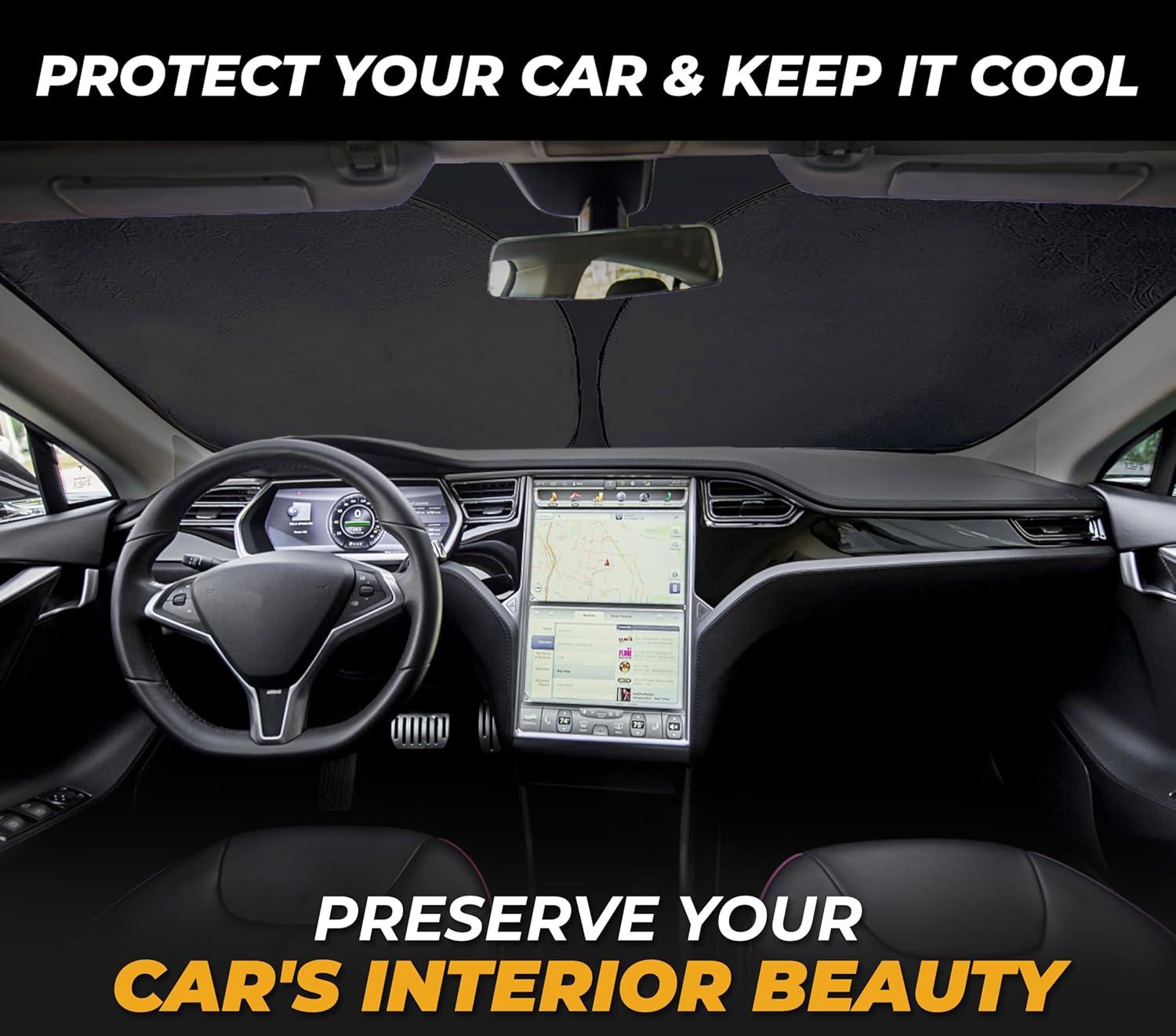 [Blocks Heat with Precision Keeps Your Cabin Cool] – Engineered to block up to 99% of harmful UV rays and sunlight, this sun shield acts as a thermal reflector that protects your dashboard, steering wheel, and leather seats. Truck front window shades maintains cabin temperature, by reflecting heat before it enters your cabin.